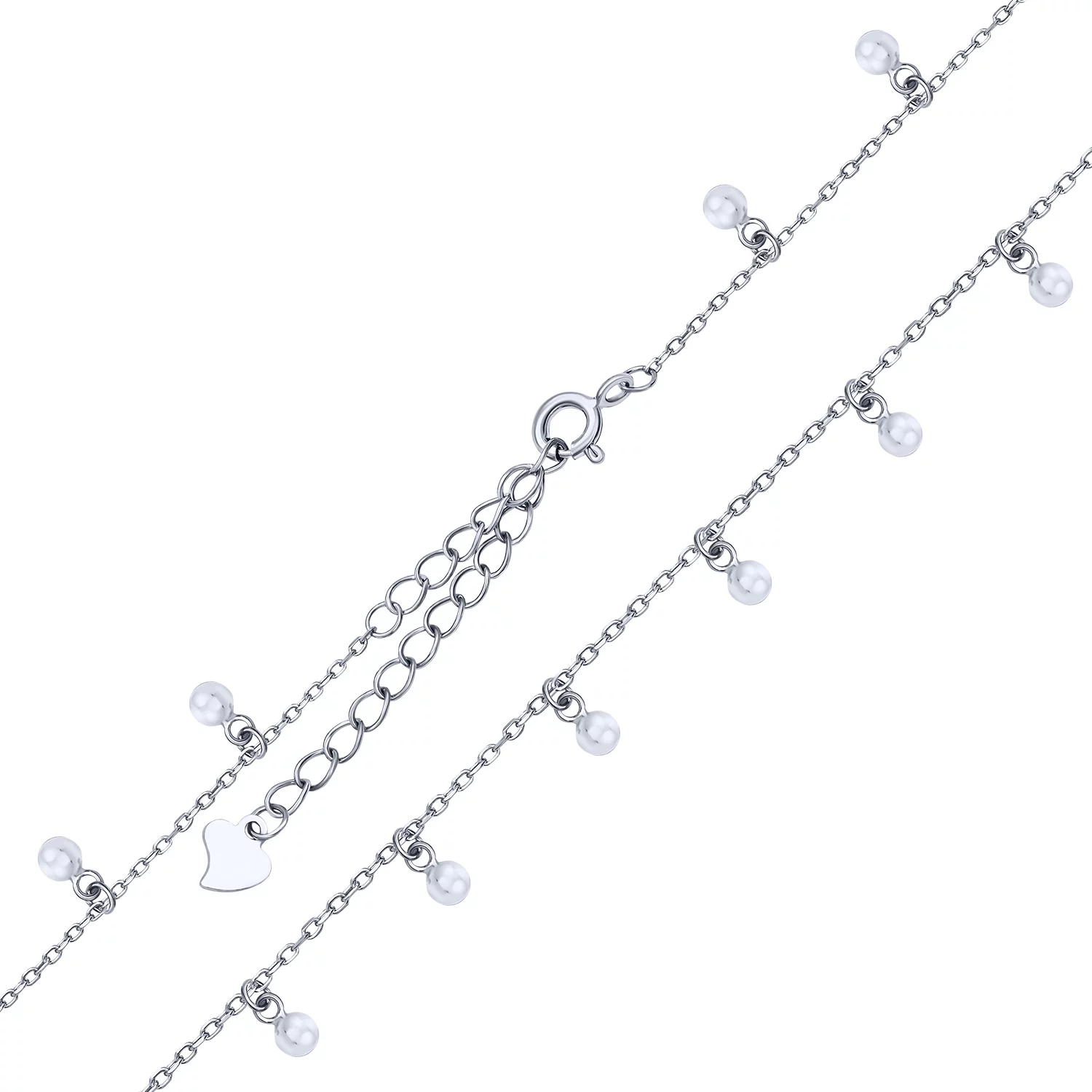 Двойной браслет из серебра "Сердце" с шариками плетение венецианское и якорь - 1824080
