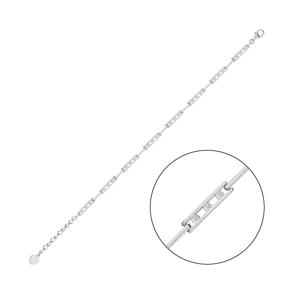 Браслет серебряный с фианитом Фантазийное плетение - 1294711