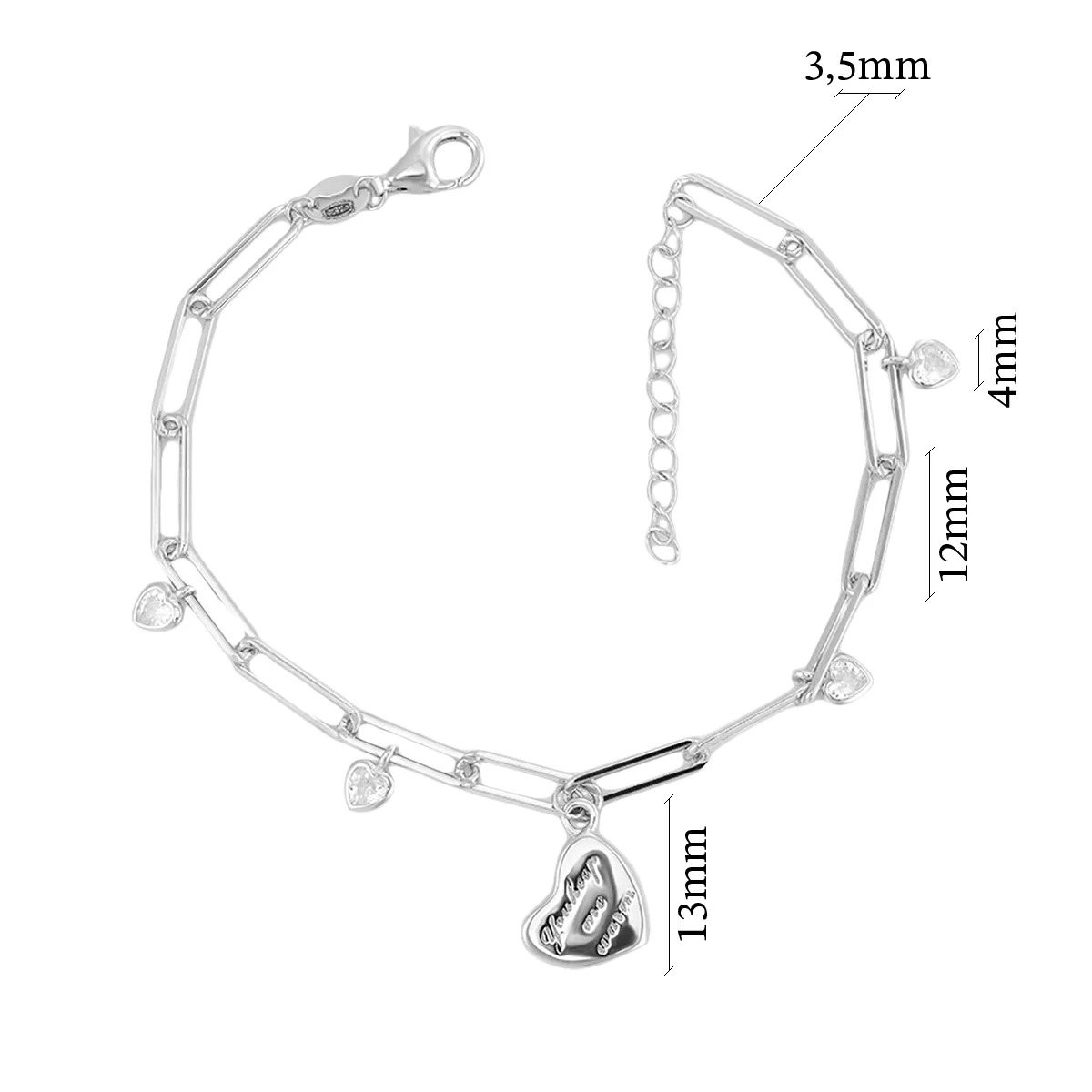 Серебряный браслет с подвесами "Сердечки" с фианитами плетение якорь - 1612545