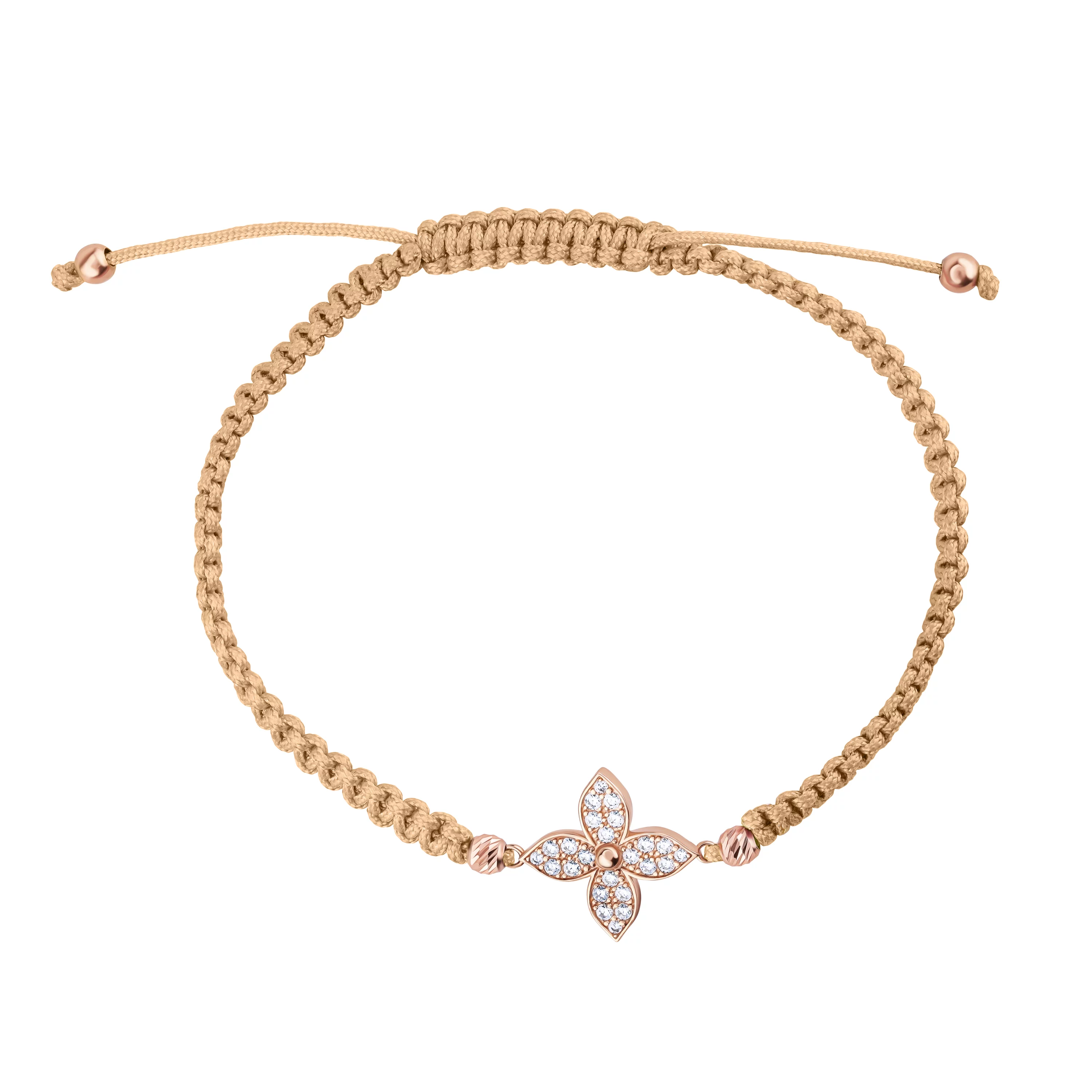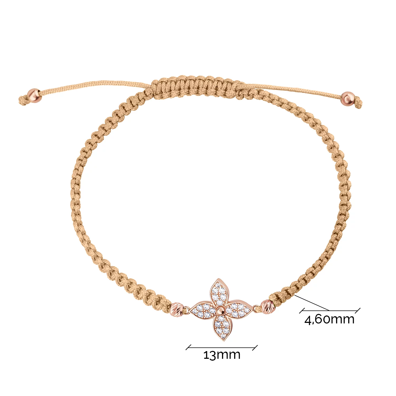 Элегантный шелковый браслет "Цветок" с вставками из красного золота и фианитами - 1936165