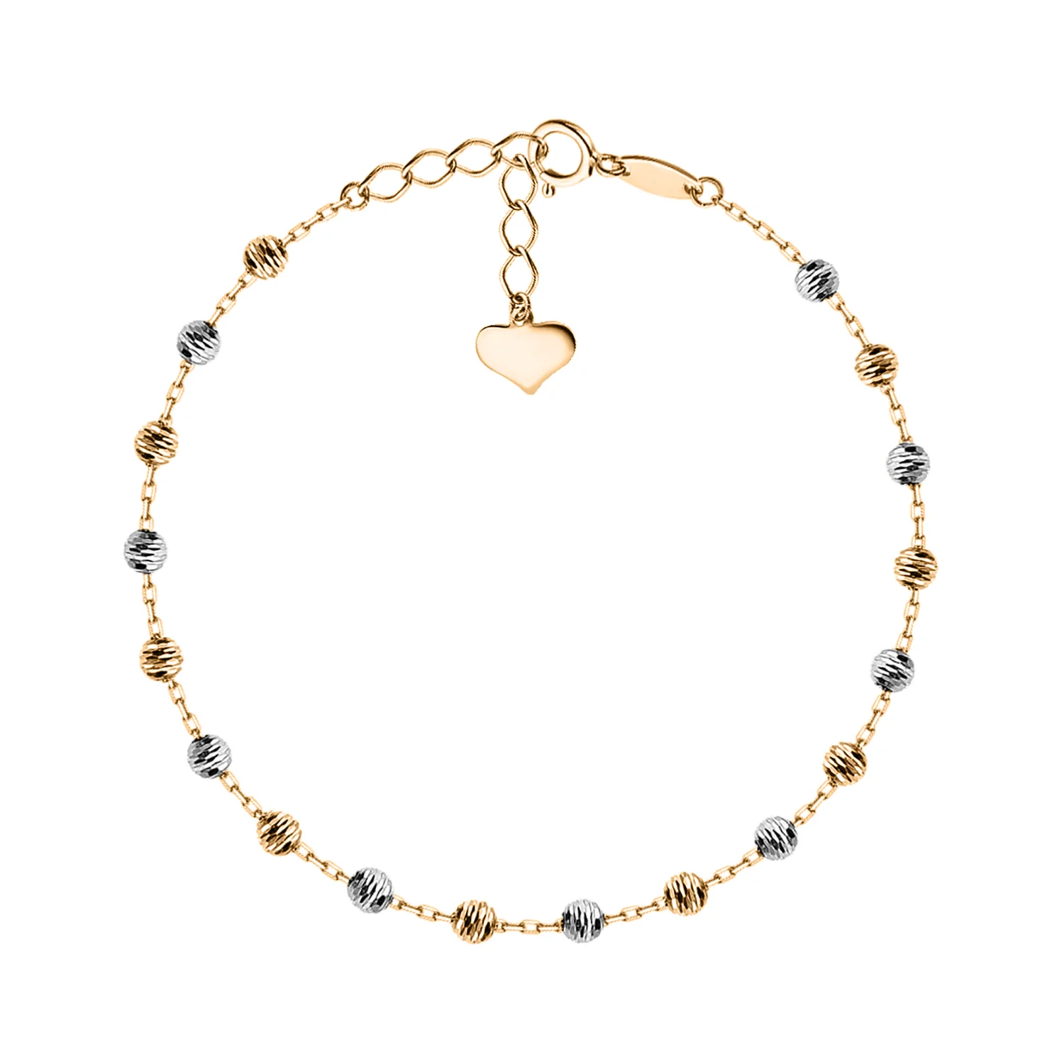 Браслет из комбинированного золота с шариками в якорном плетении - 1534111
