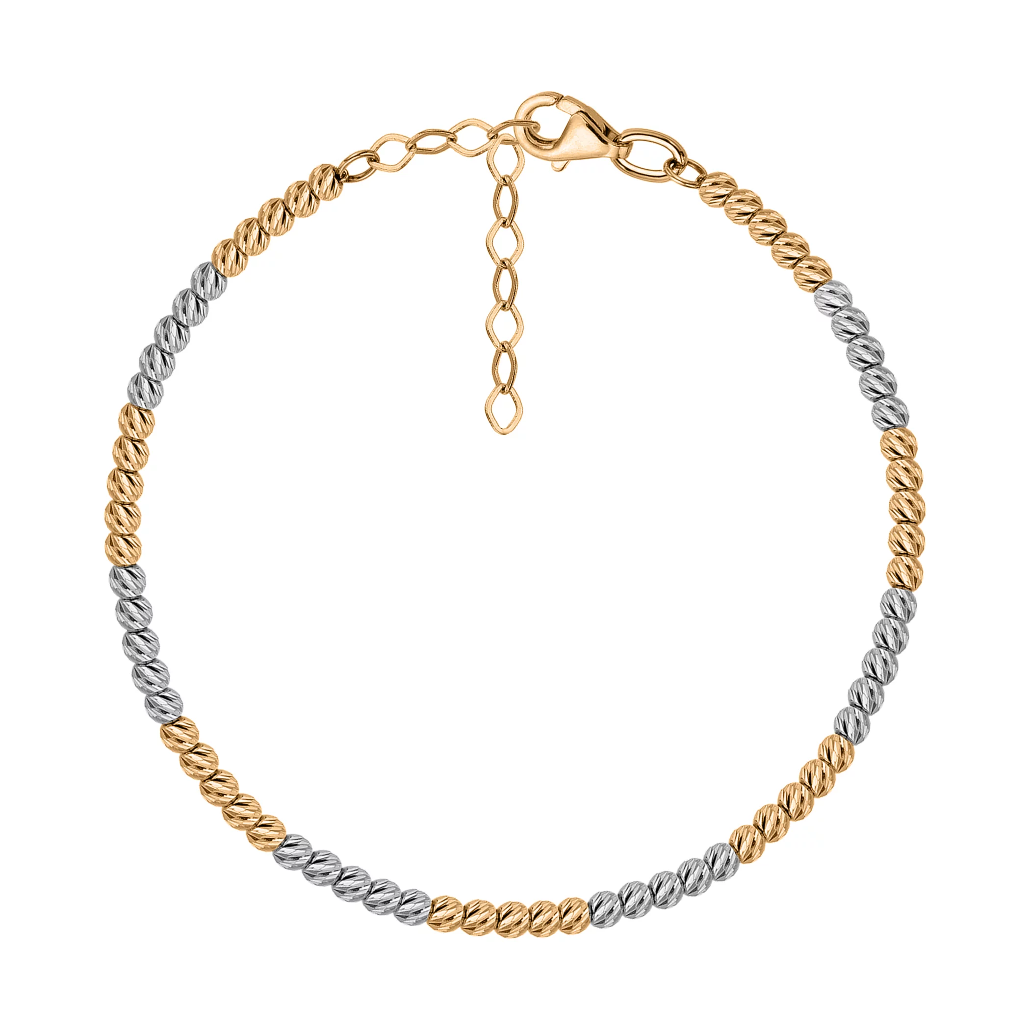 Браслет из комбинированного золота с шариками в якорном плетении - 1534111