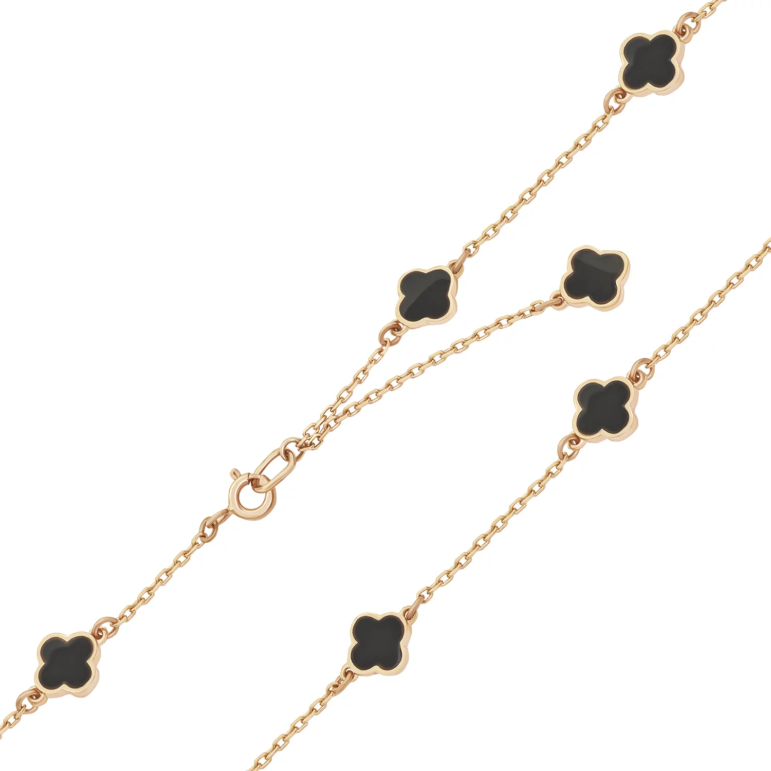 Браслет "Клевер" из красного золота с ониксом в якорном плетении - 1747727