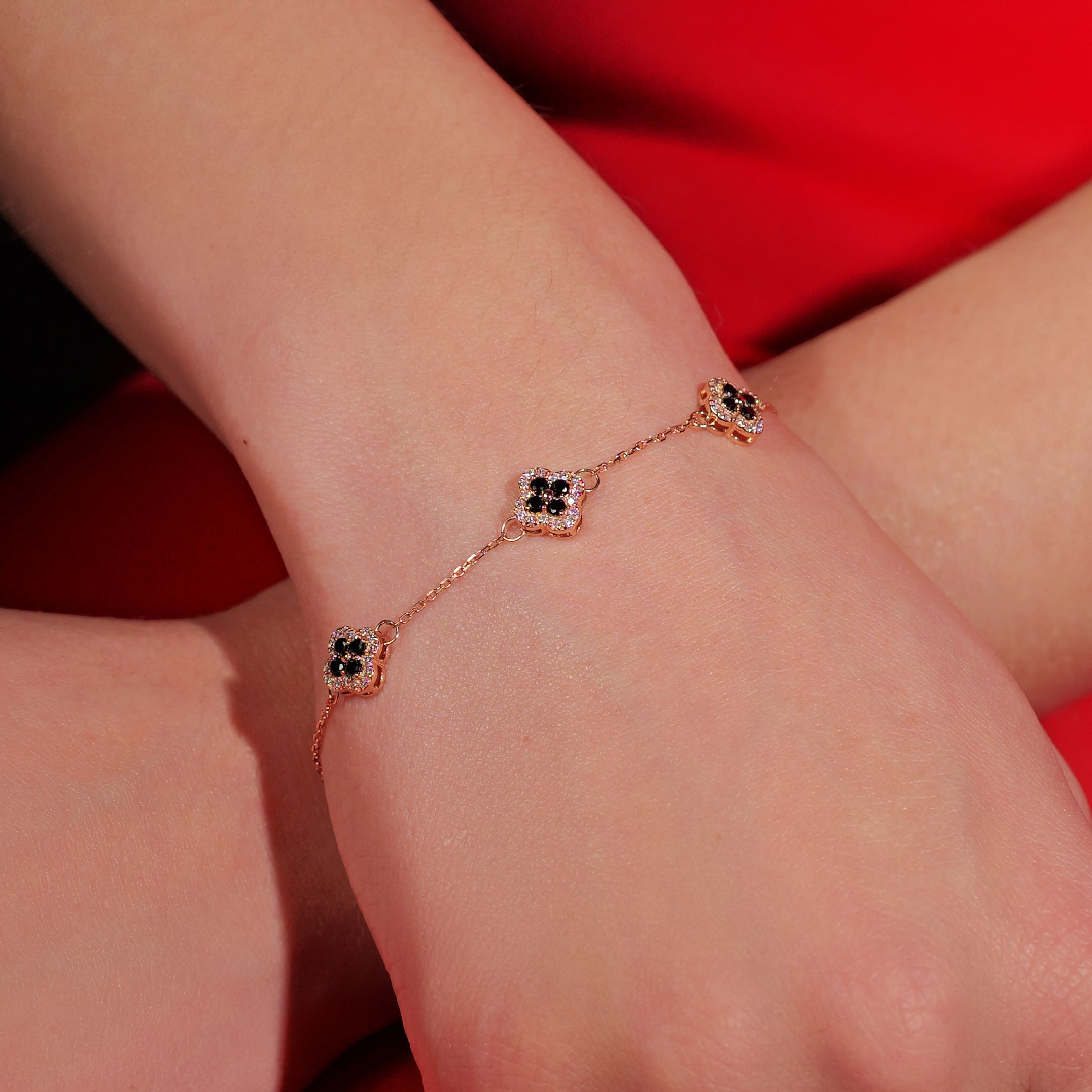 Браслет в красном золоте "Клевер" с фианитами плетение якорь - 1976475