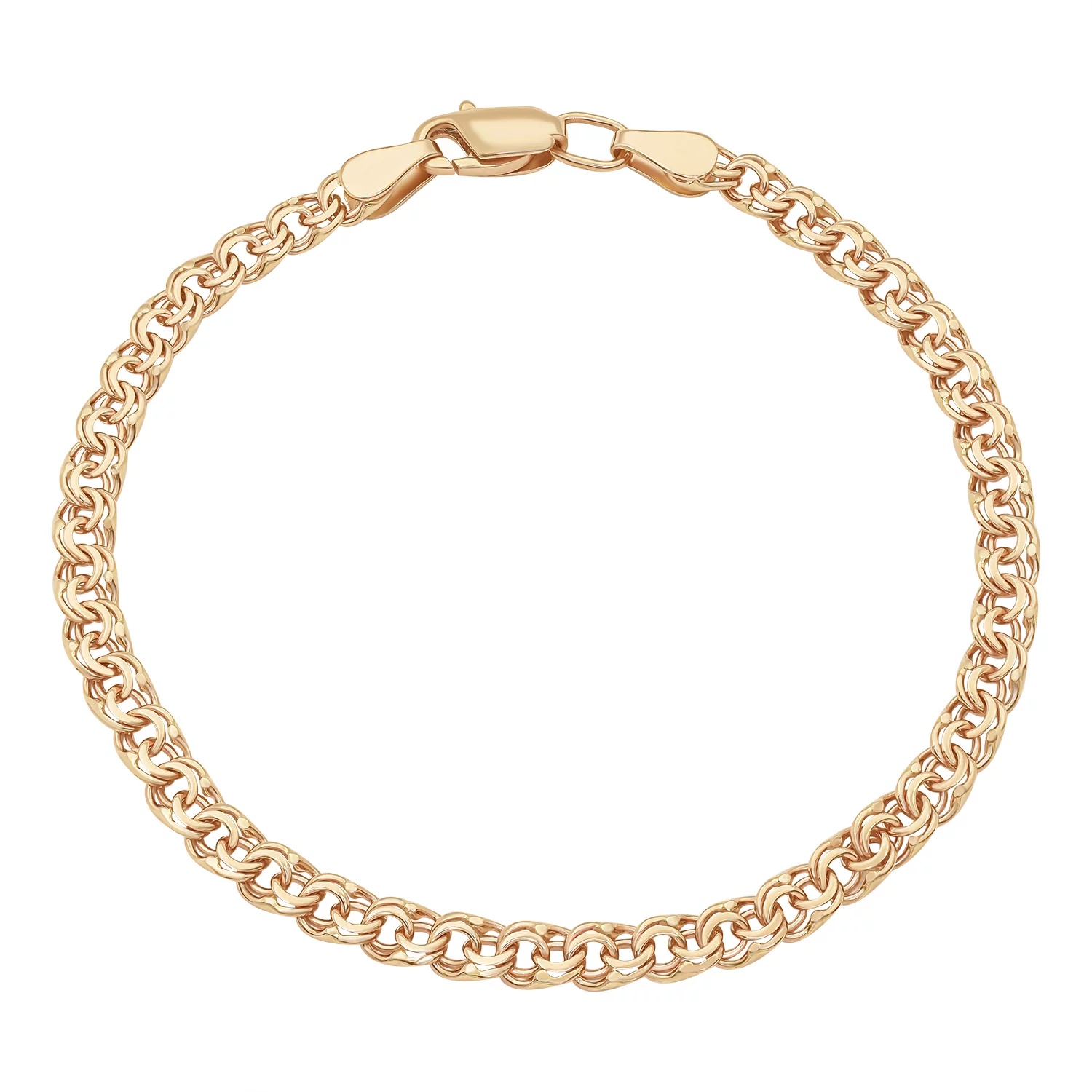 Браслет из комбинированного золота с шариками в якорном плетении - 1534111