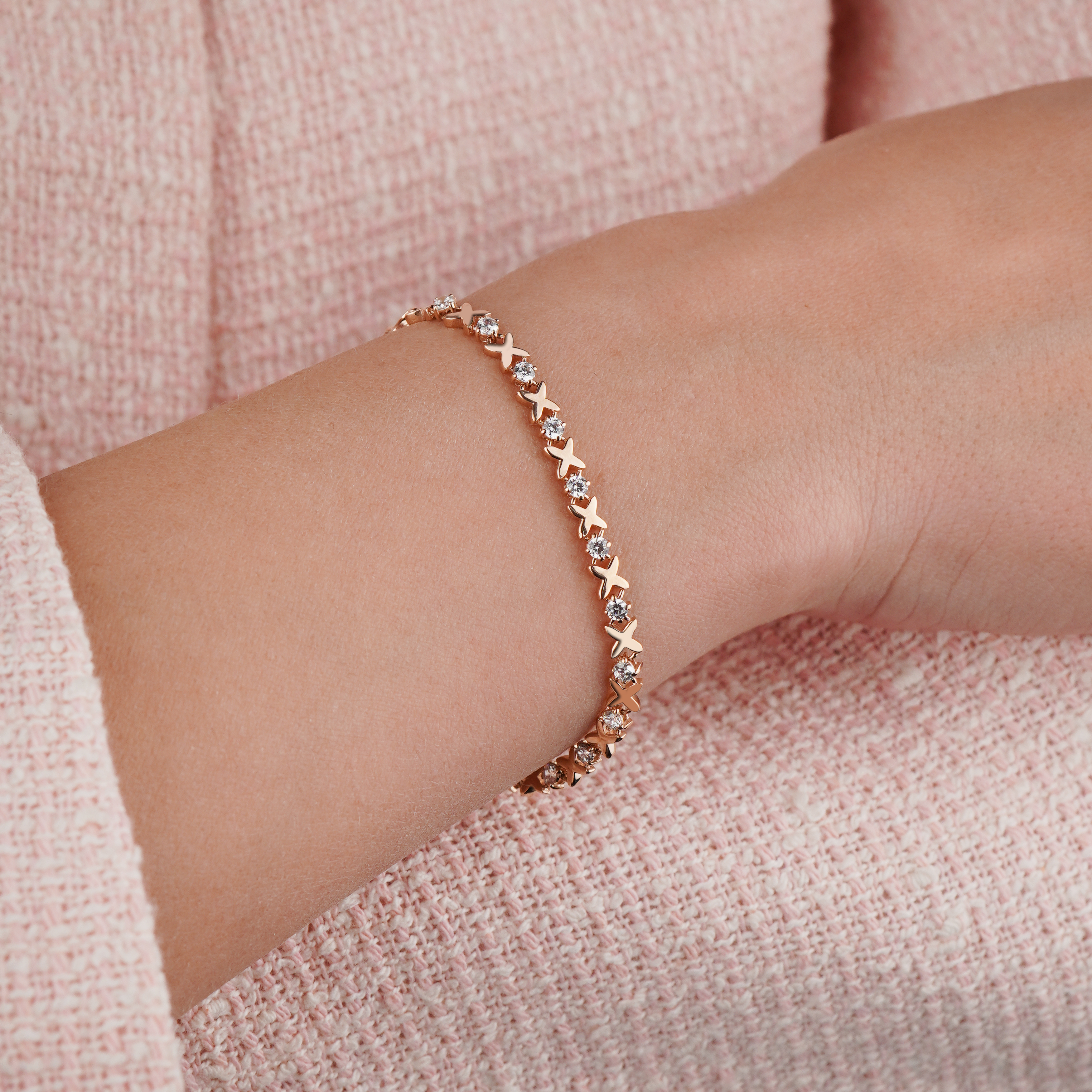 Браслет в красном золоте с фианитами плетение фантазия - 2218033