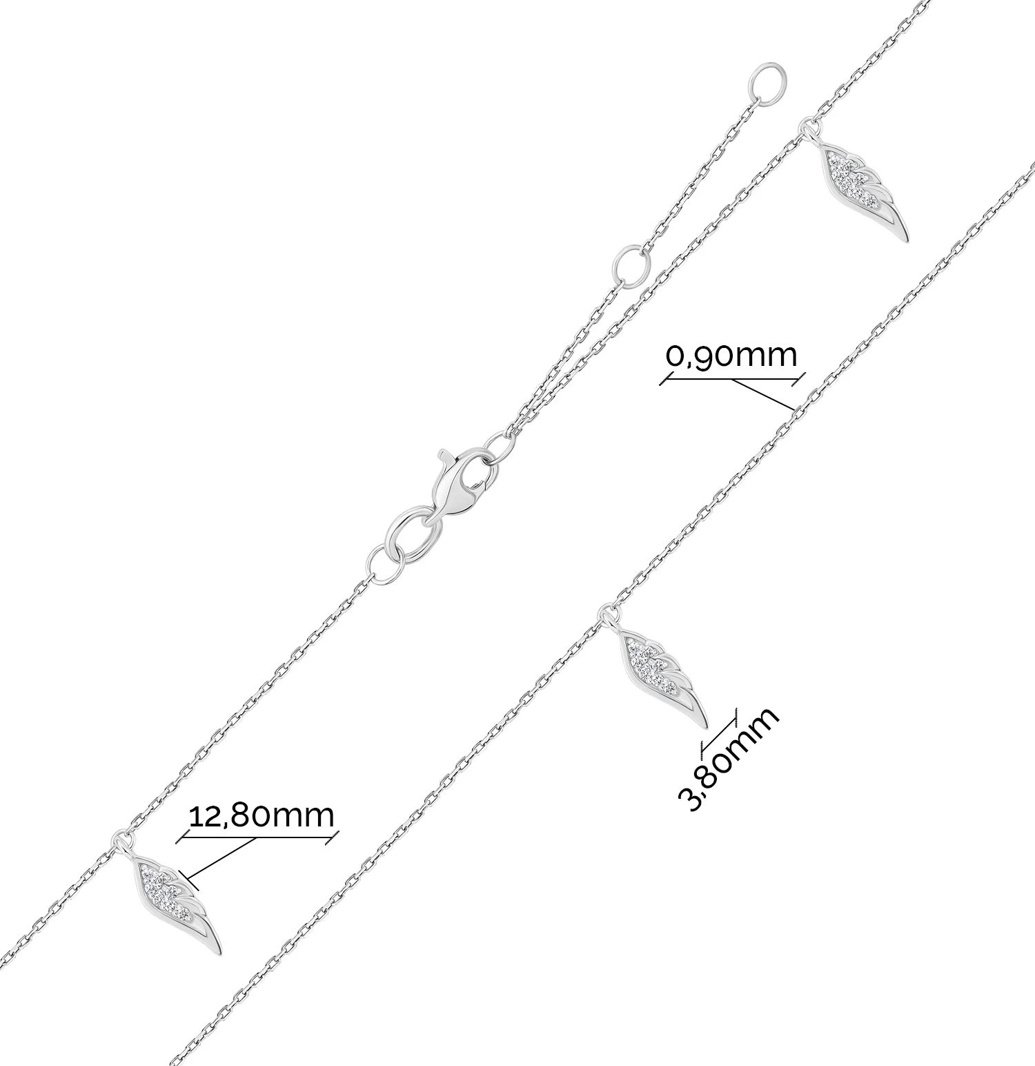 Браслет в якорном плетении с подвесами "Листики" из белого золота с бриллиантами - 2147297