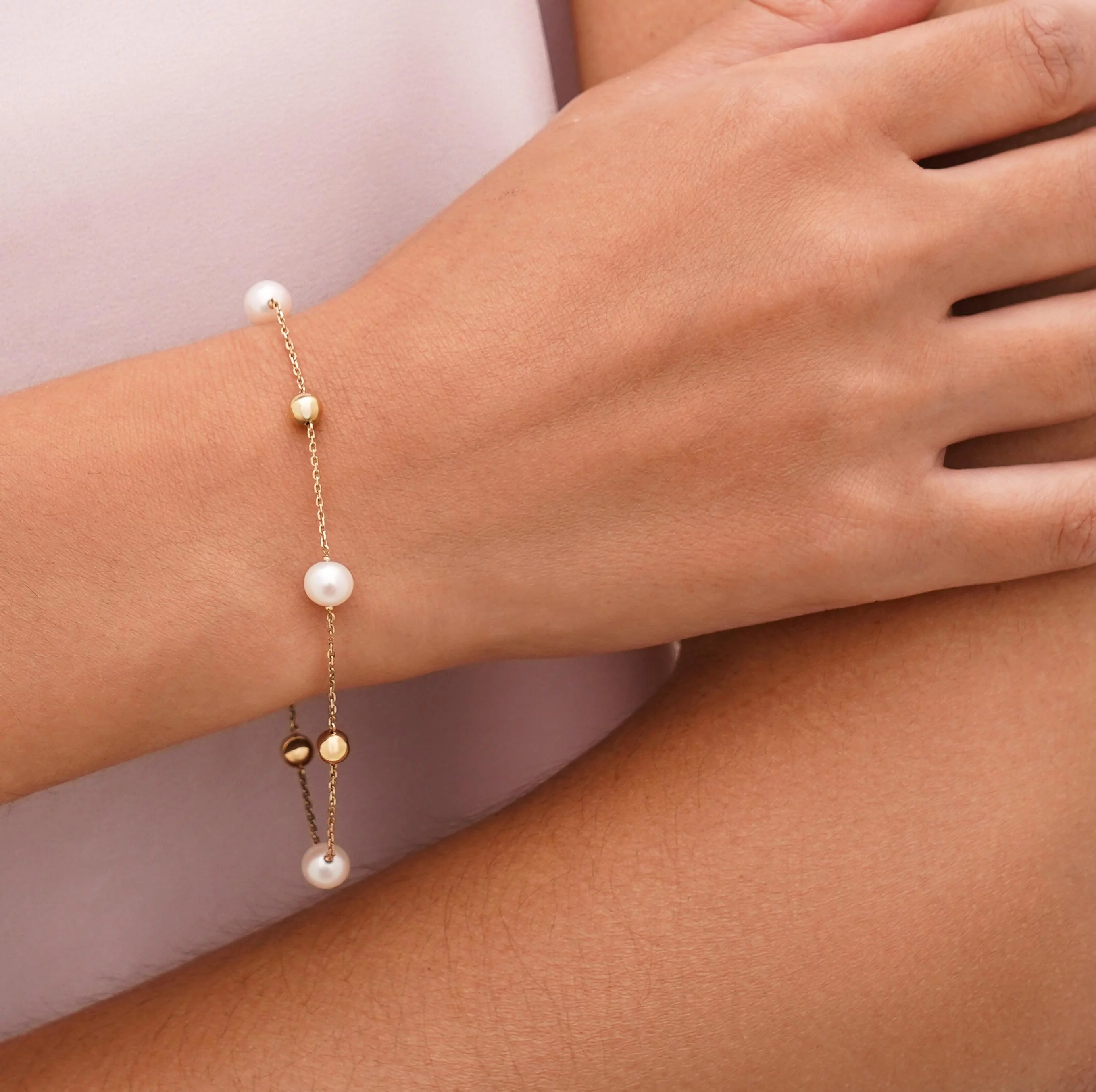 Браслет двойной из комбинированного золота якорного плетения с шариками - 1825511