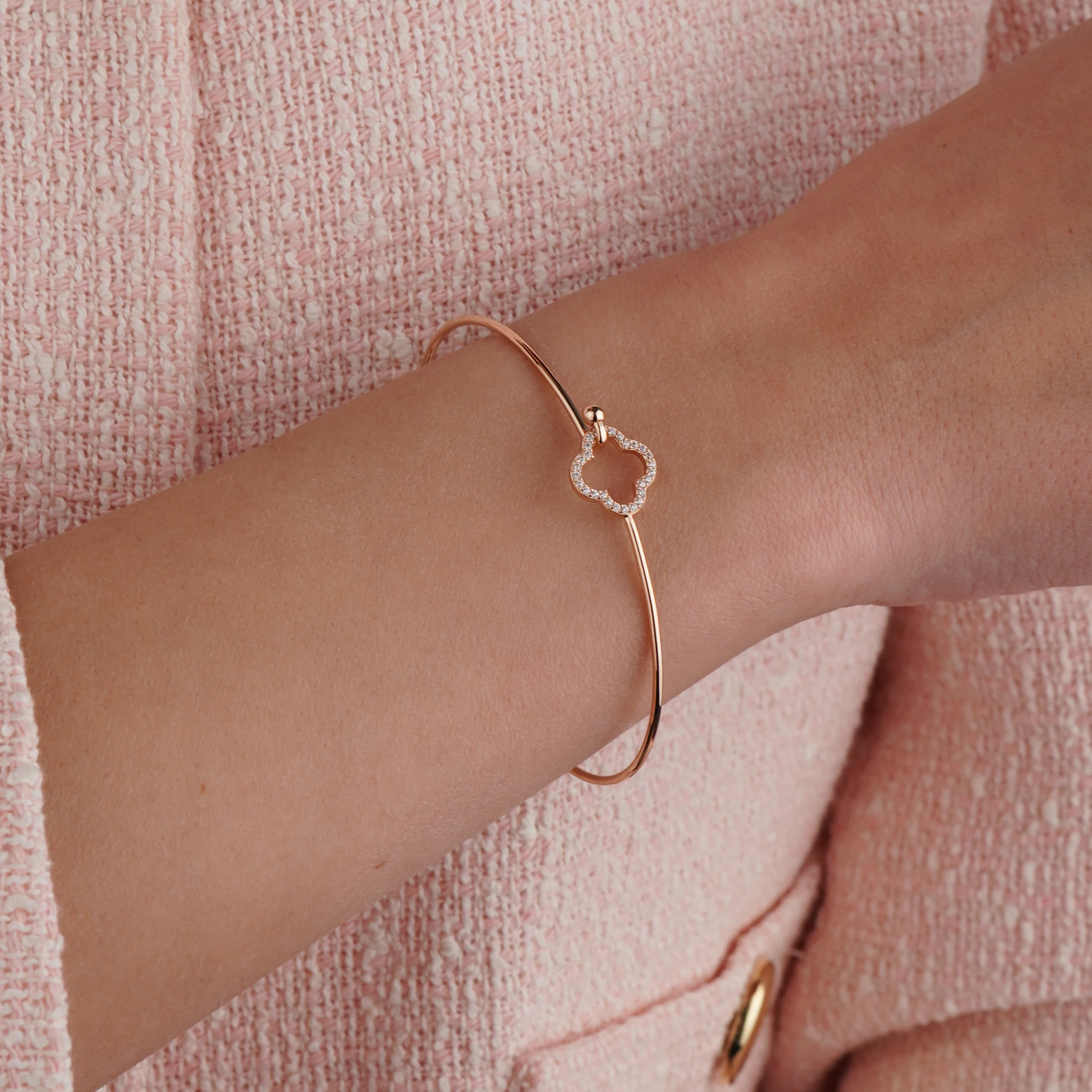 Стильный жесткий браслет "Love" в красном золоте с фианитами - 1874842