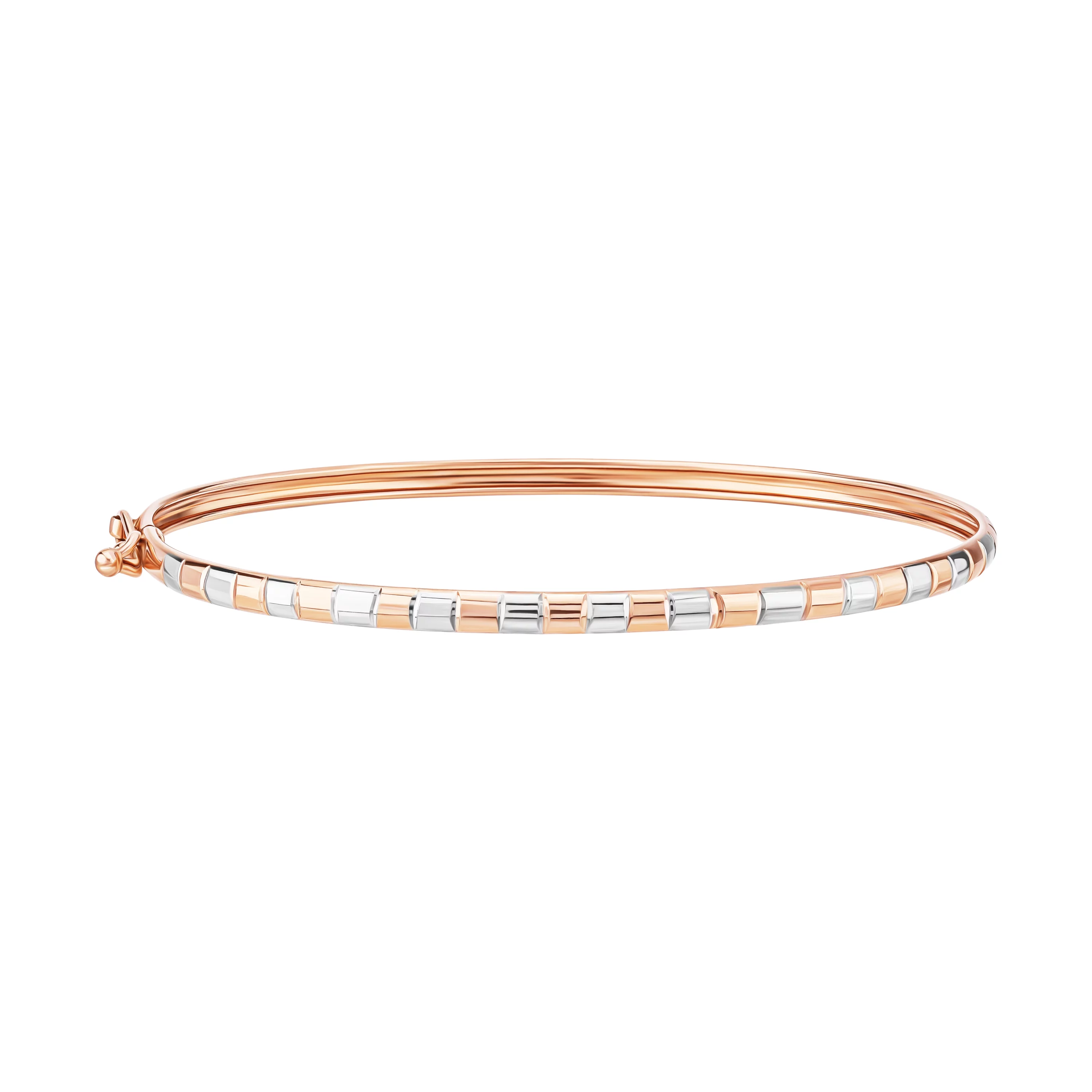 Стильный жесткий браслет с алмазной гранью в комбинированном золоте - 1859340