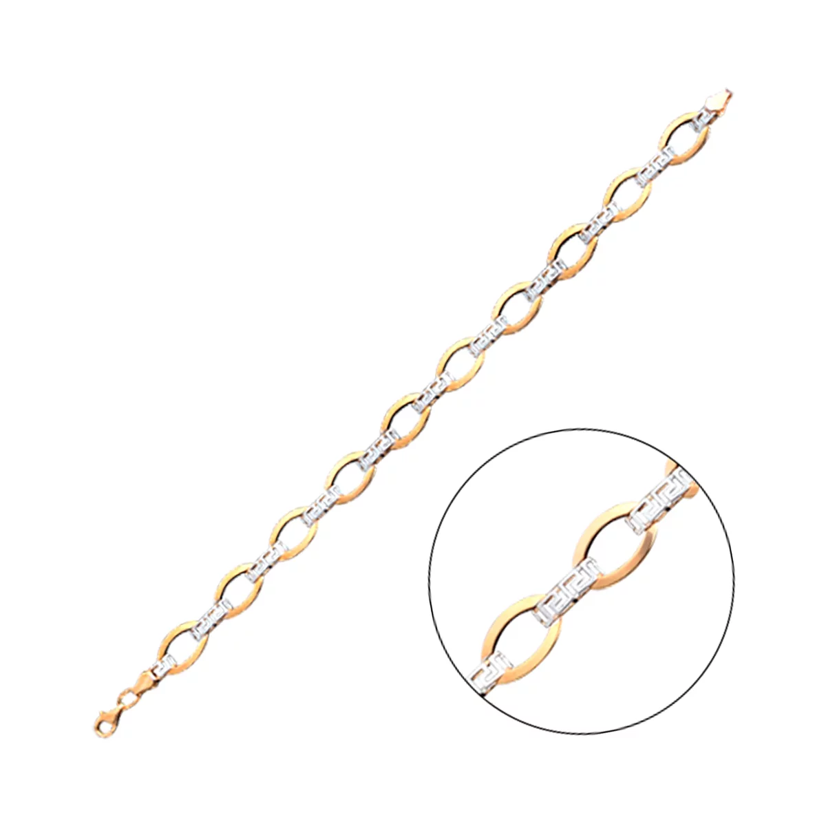 Браслет из комбинированного золота плетение якорь - 384011