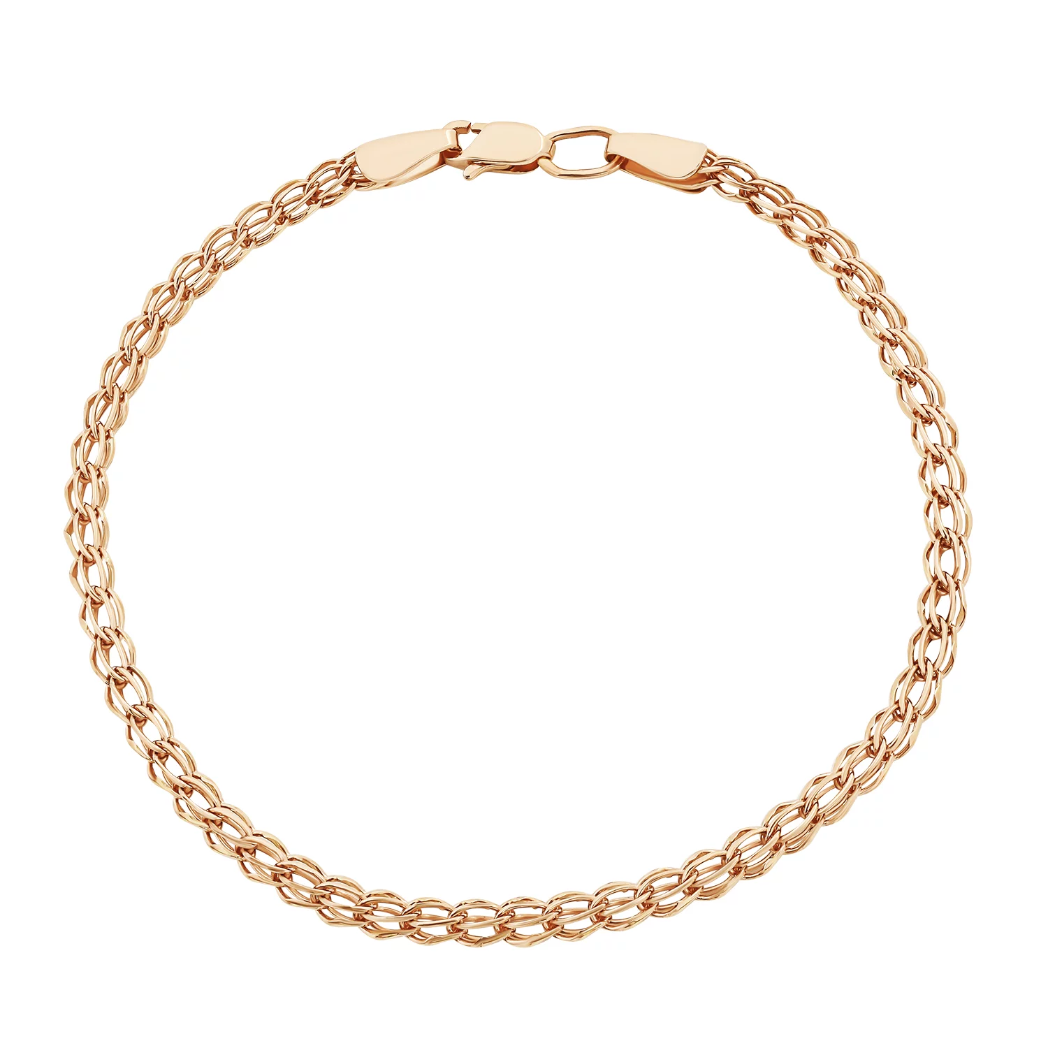 Браслет двойной из лимонного золота с шариками якорного плетения - 1825513
