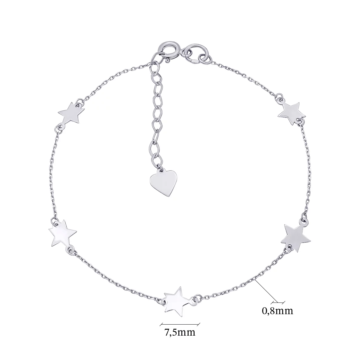 Браслет "Звездочки" из белого золота плетение якорное - 1303119