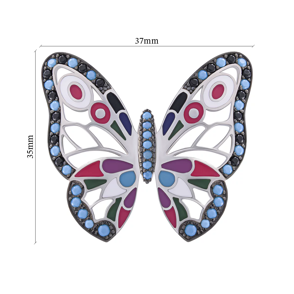 Брошка с цветной вставкой из нанокристаллом и эмалью - 842209