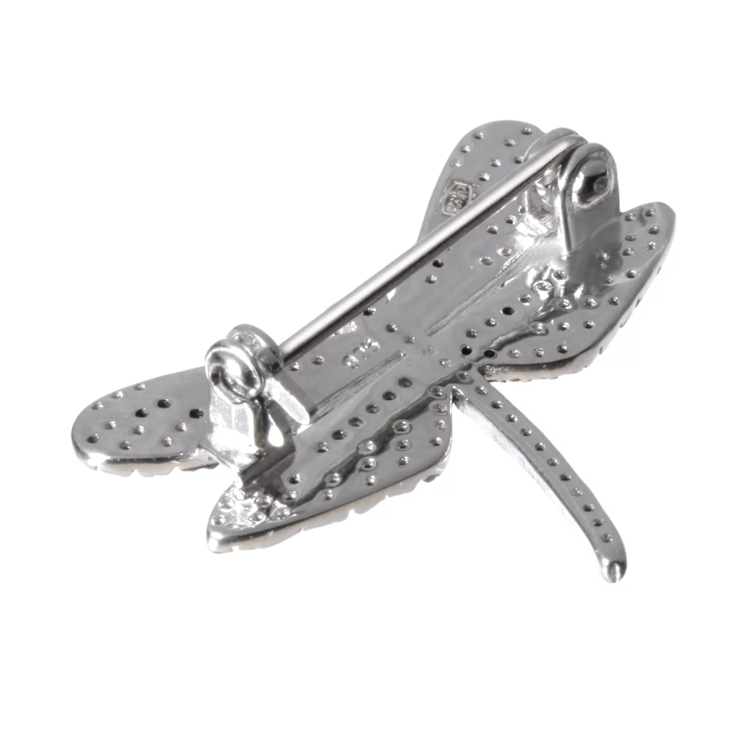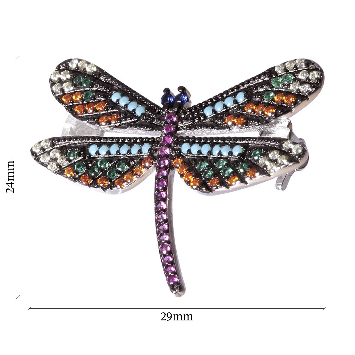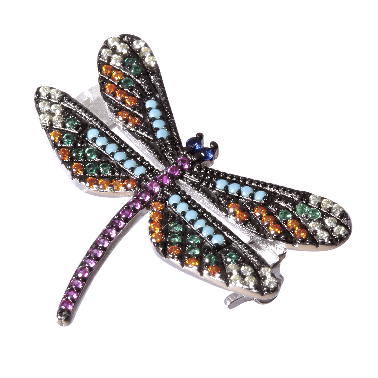 Брошка серебряная с цветными фианитом "Стрекоза" - 967801