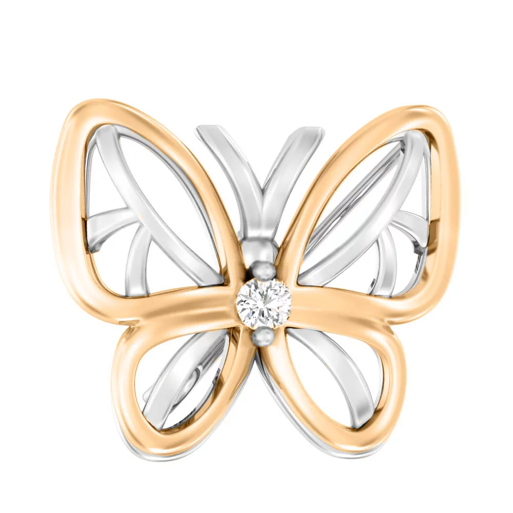 Брошка в красном и белом золоте "Бабочка" с фианитом - 1827267