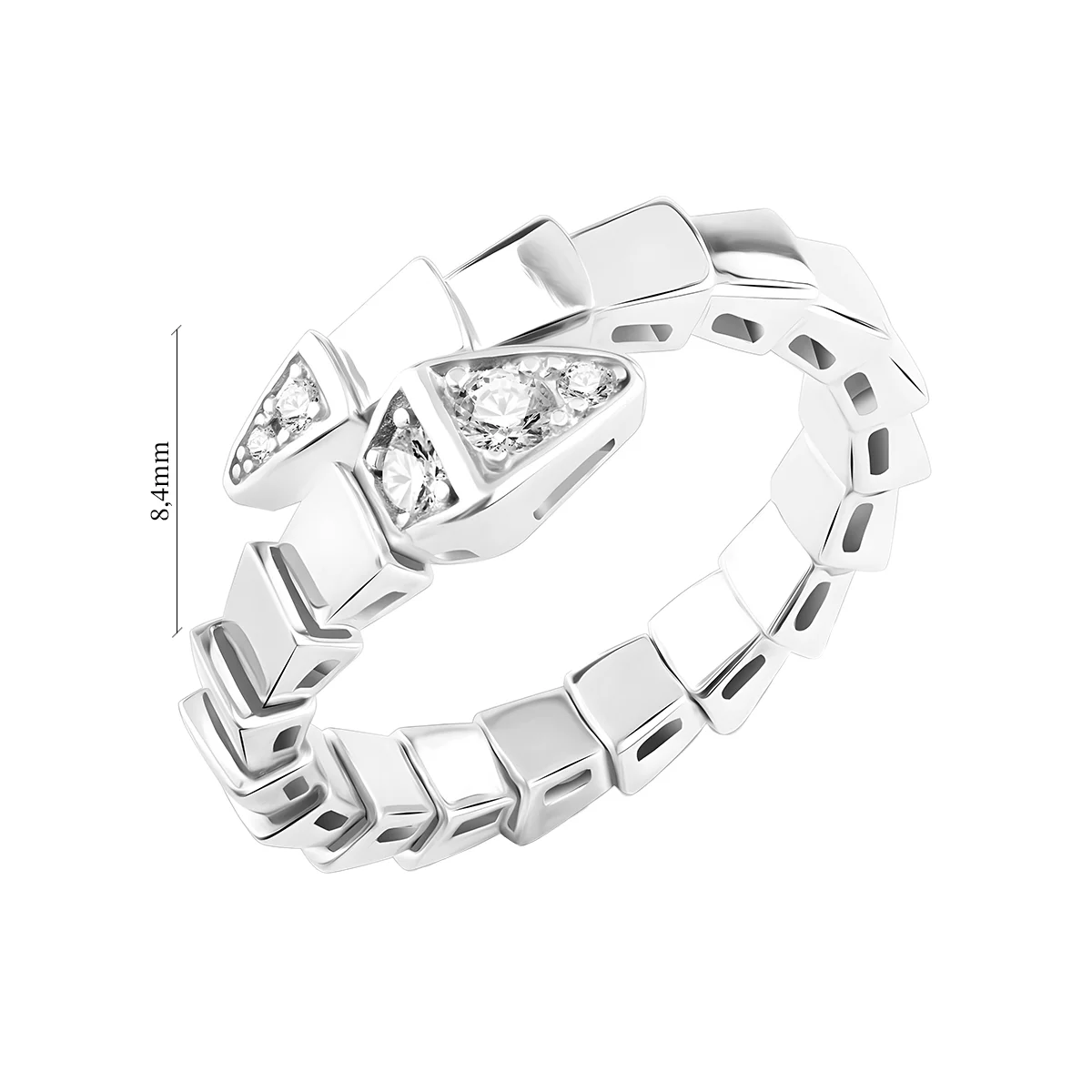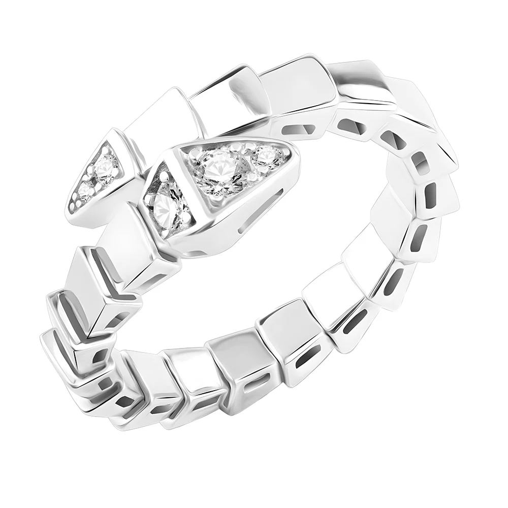 Cеребряное кольцо "Змея" с фианитами - 1519259