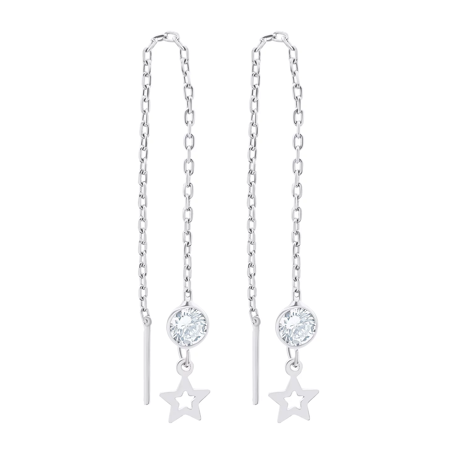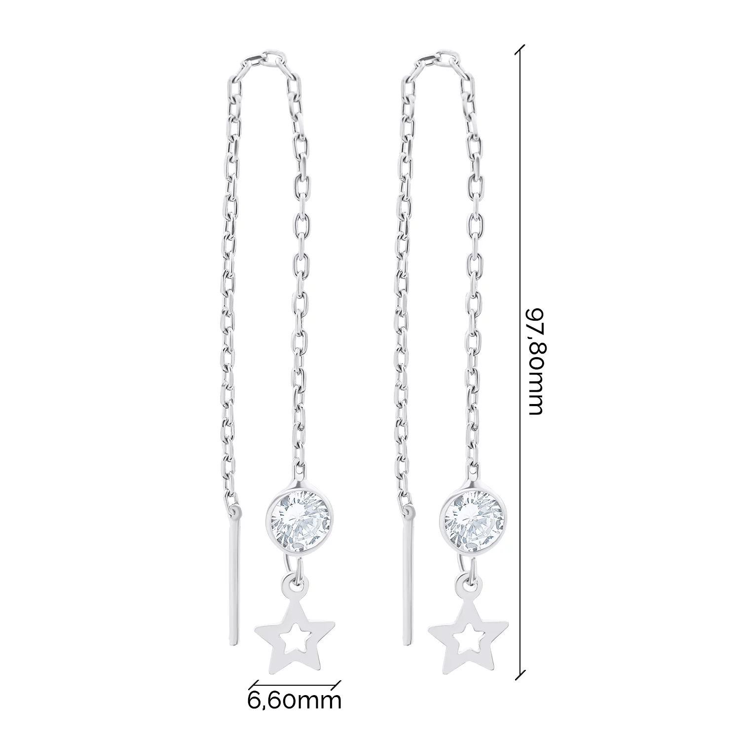 Cерьги-протяжки "Звездочки" из серебра с подвесками и фианитами - 1520676