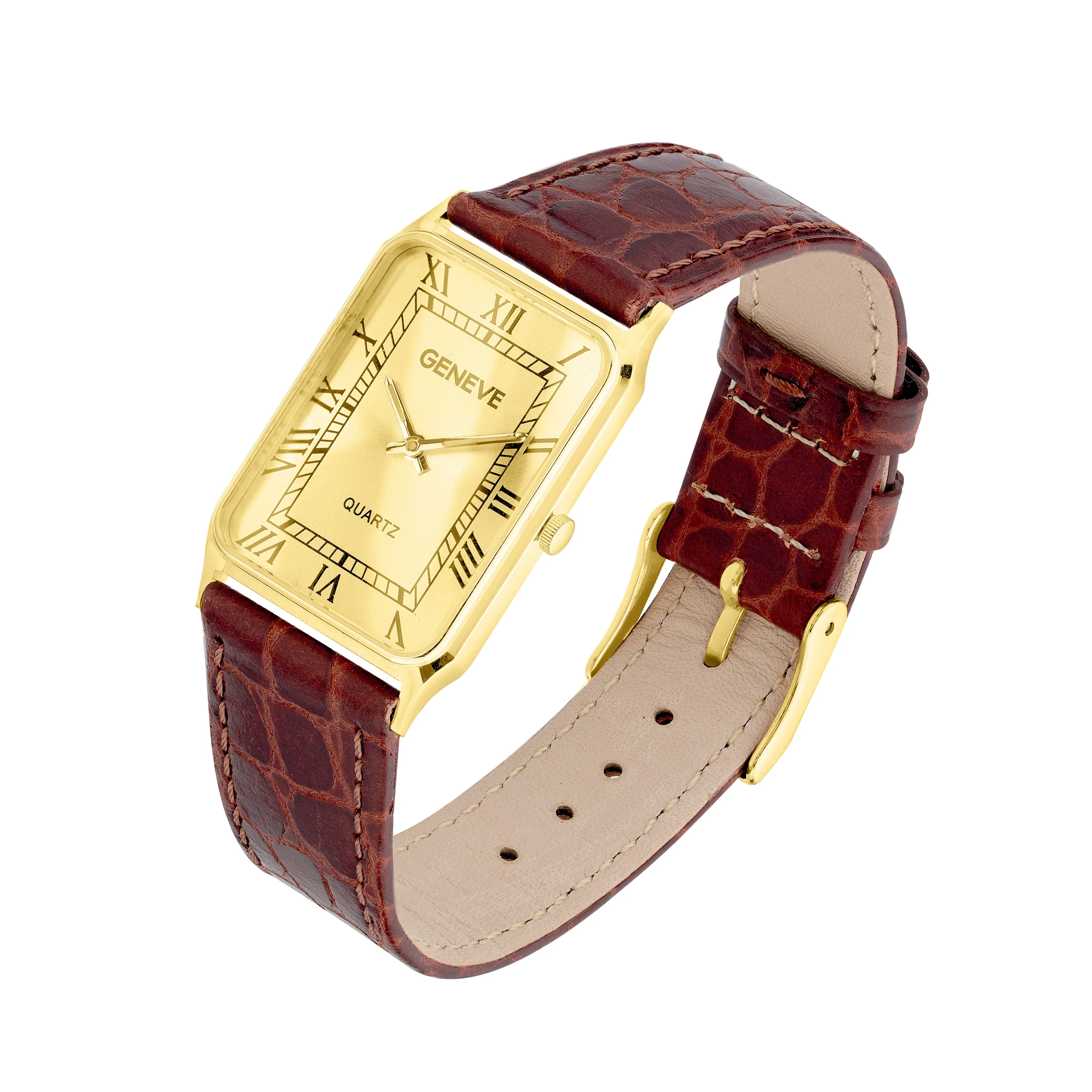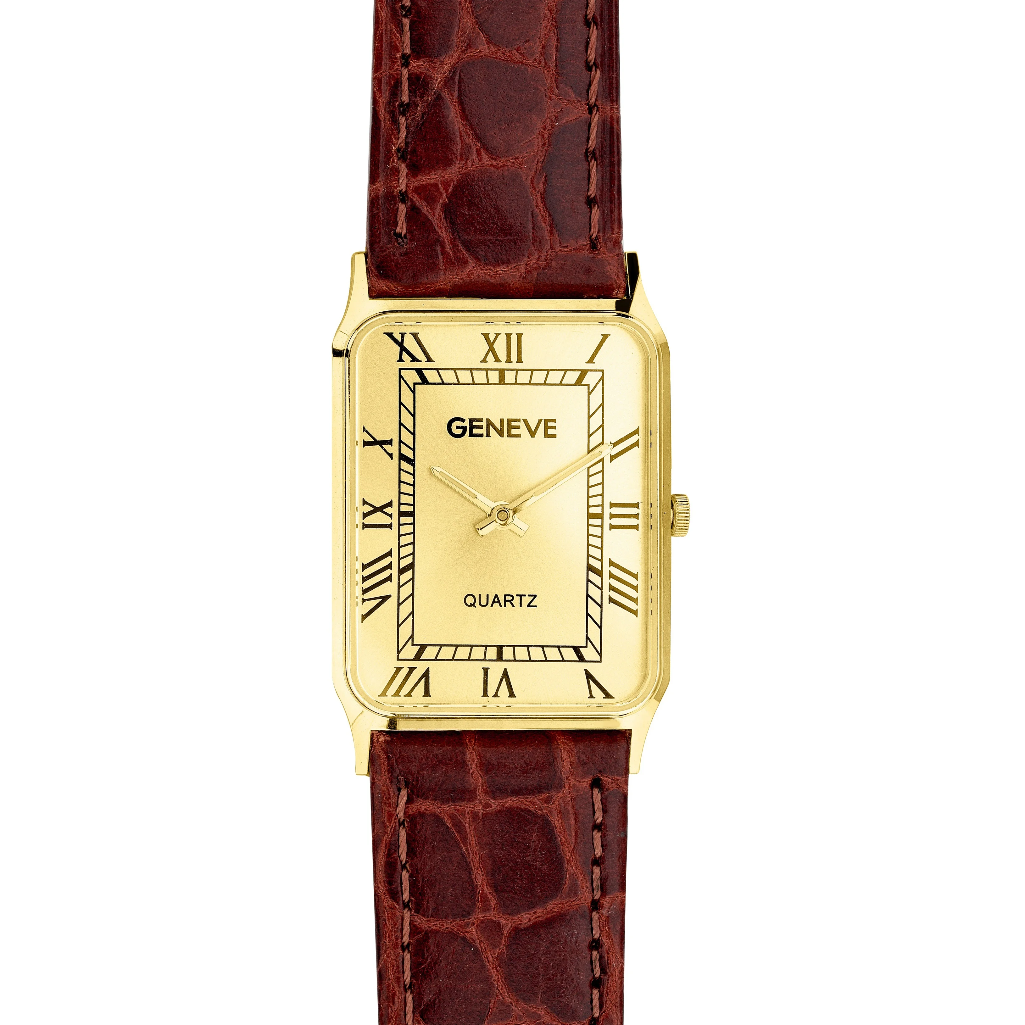 Часы наручные из лимонного золота "Geneve" с кожаным ремешком - 2181234