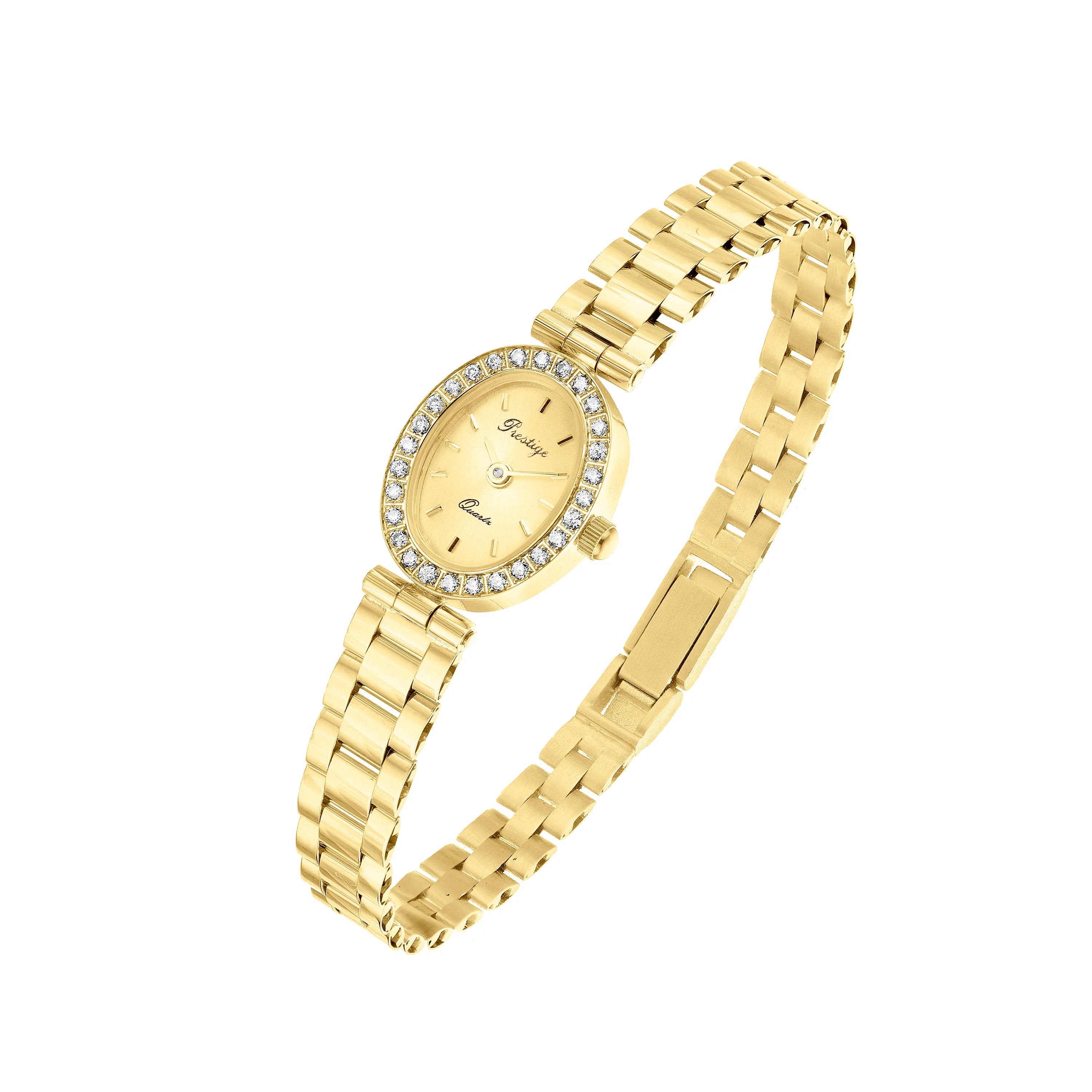 Часы наручные "Prestige" из желтого золота с фианитами с плетением ролекс - 2049967