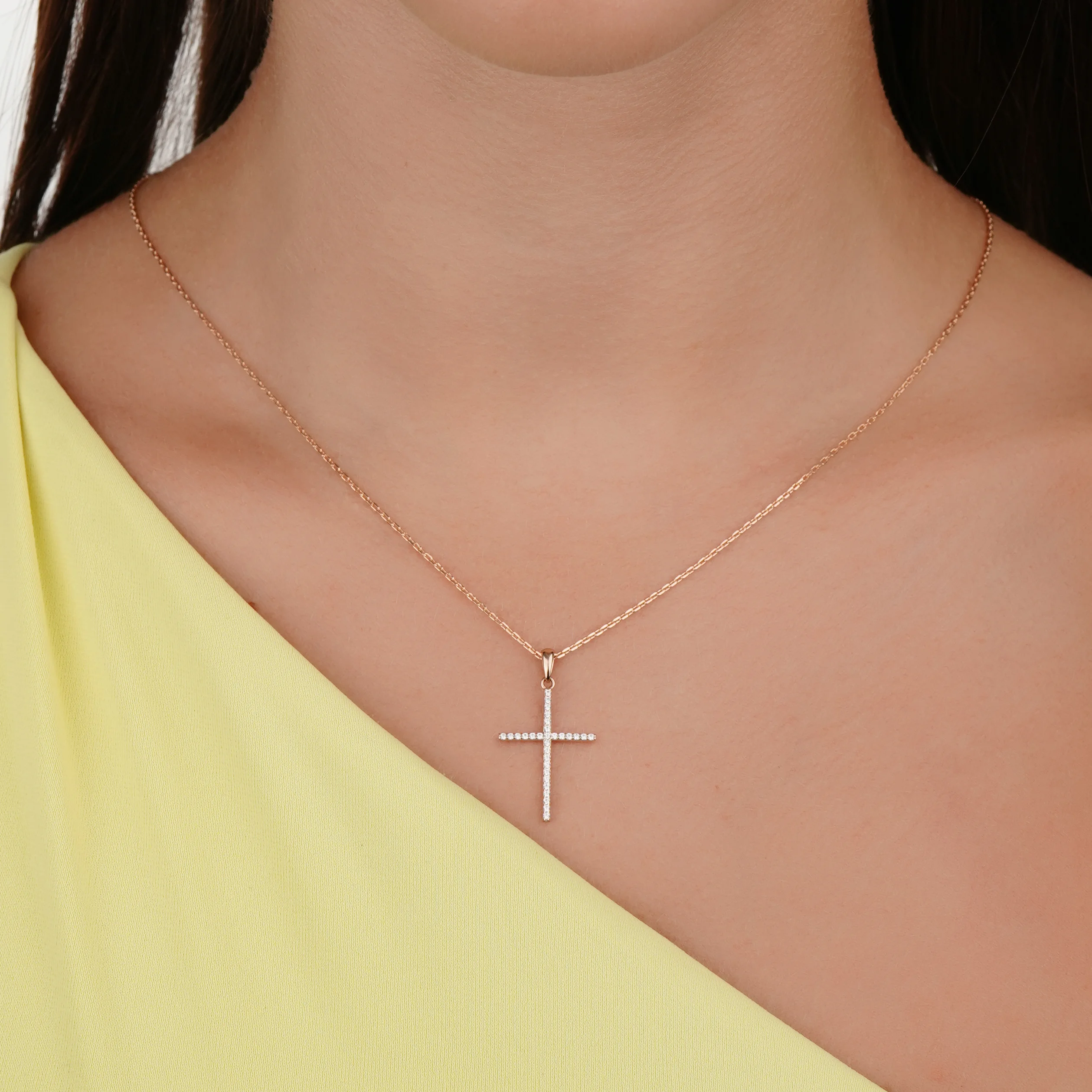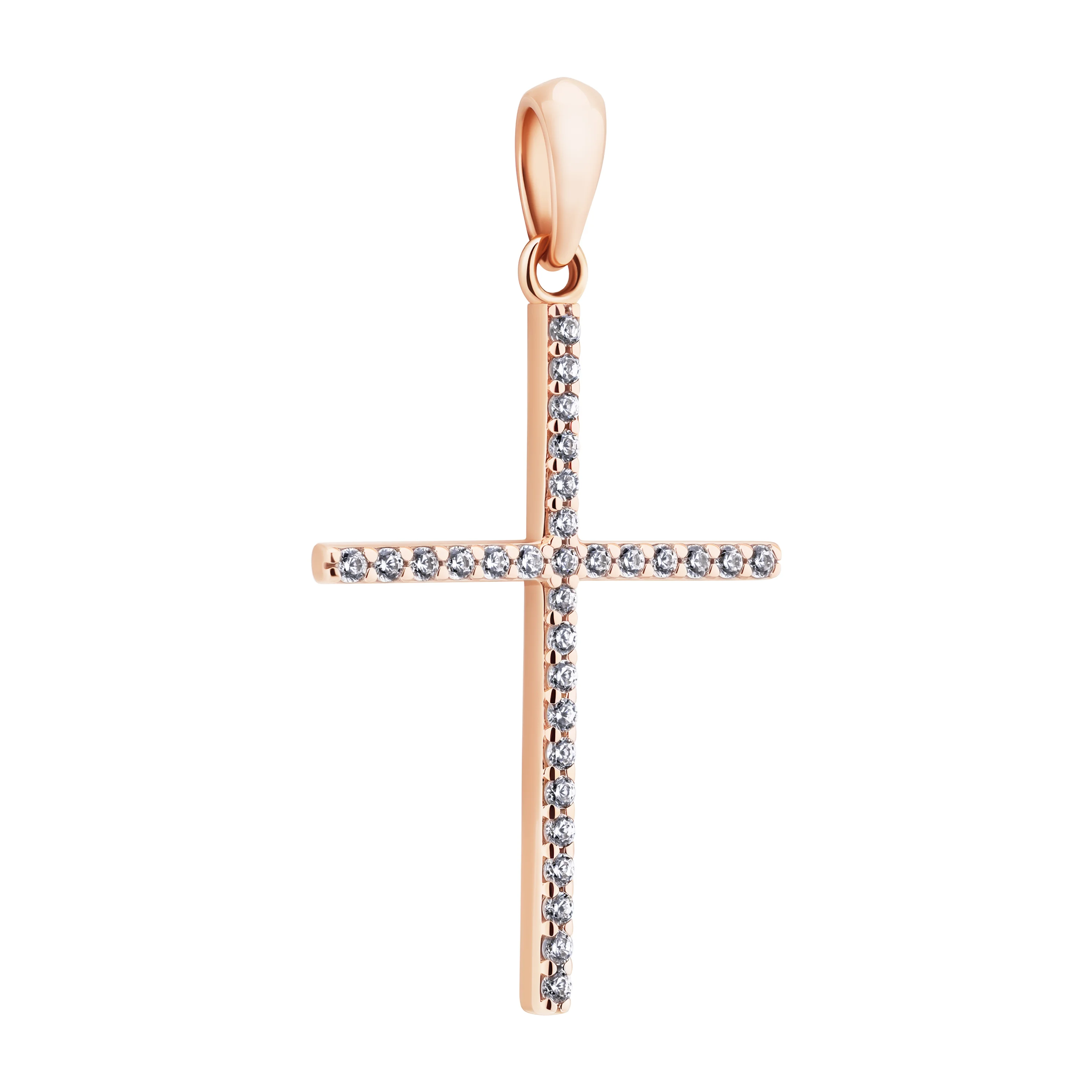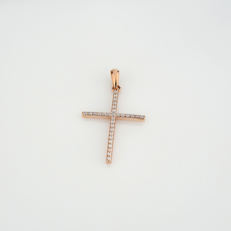 Декоративный крестик из красного золота с фианитами - 2092773