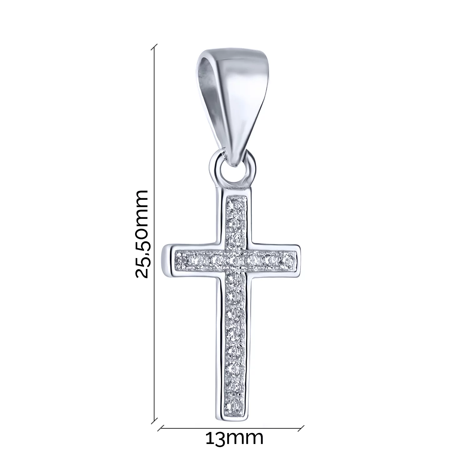 Декоративный крестик из серебра с дорожкой фианитов - 1785584