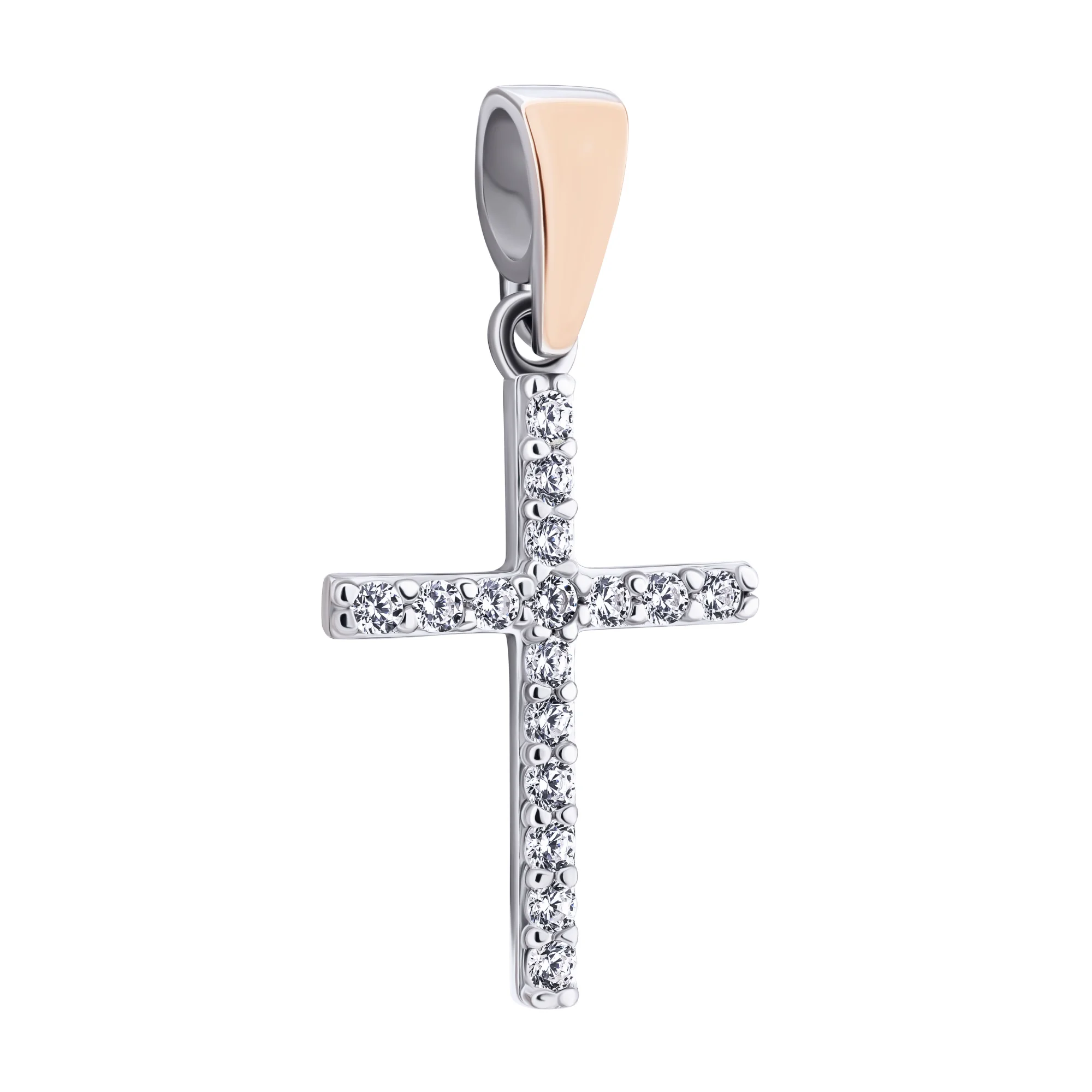 Декоративный крестик из серебра с позолотой и фианитами - 2112366