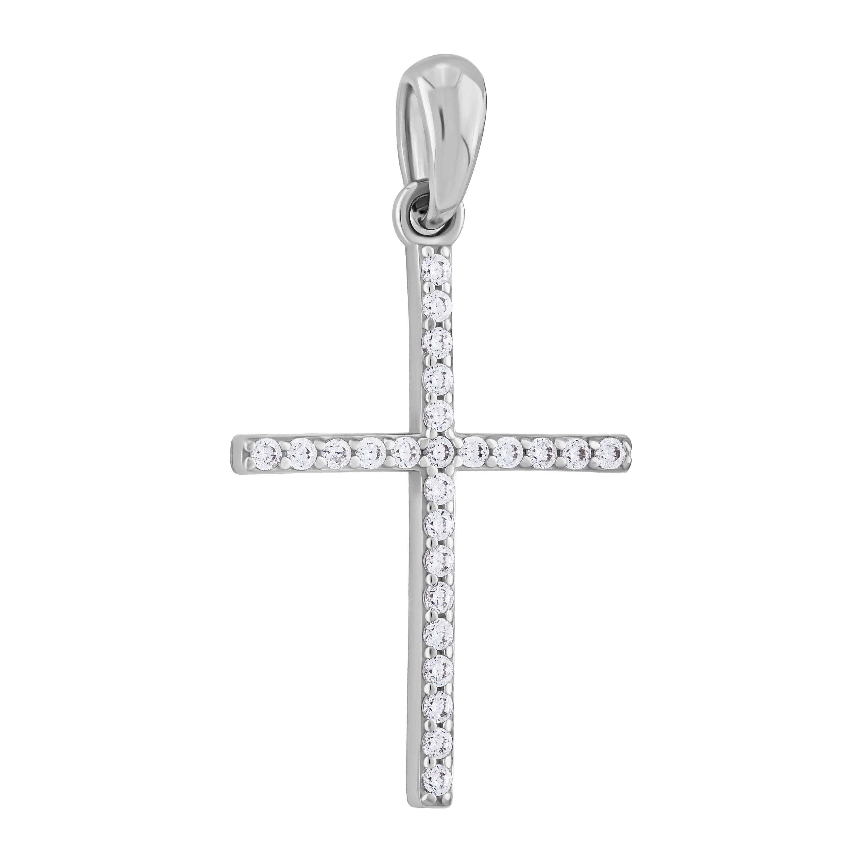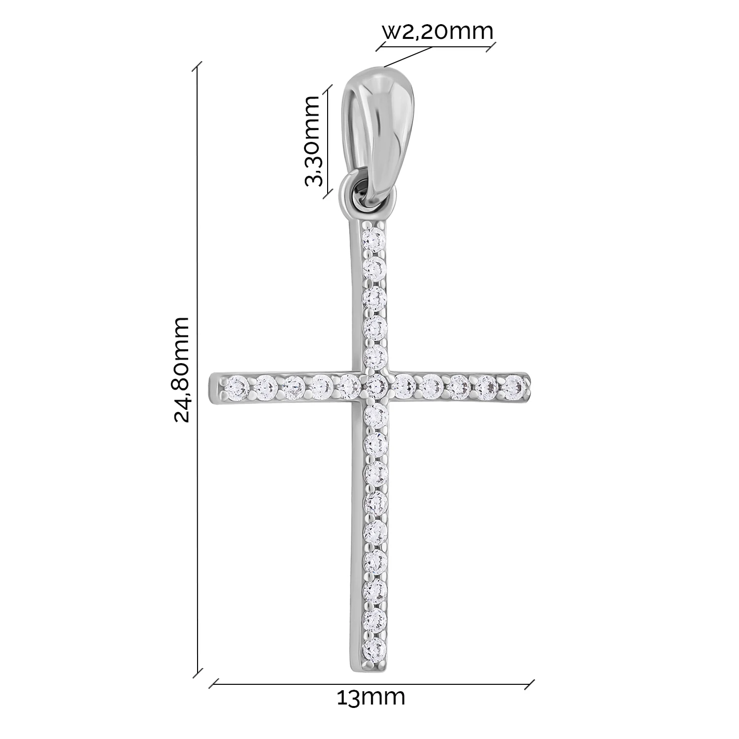 Декоративный крестик в белом золоте с фианитами - 2100130