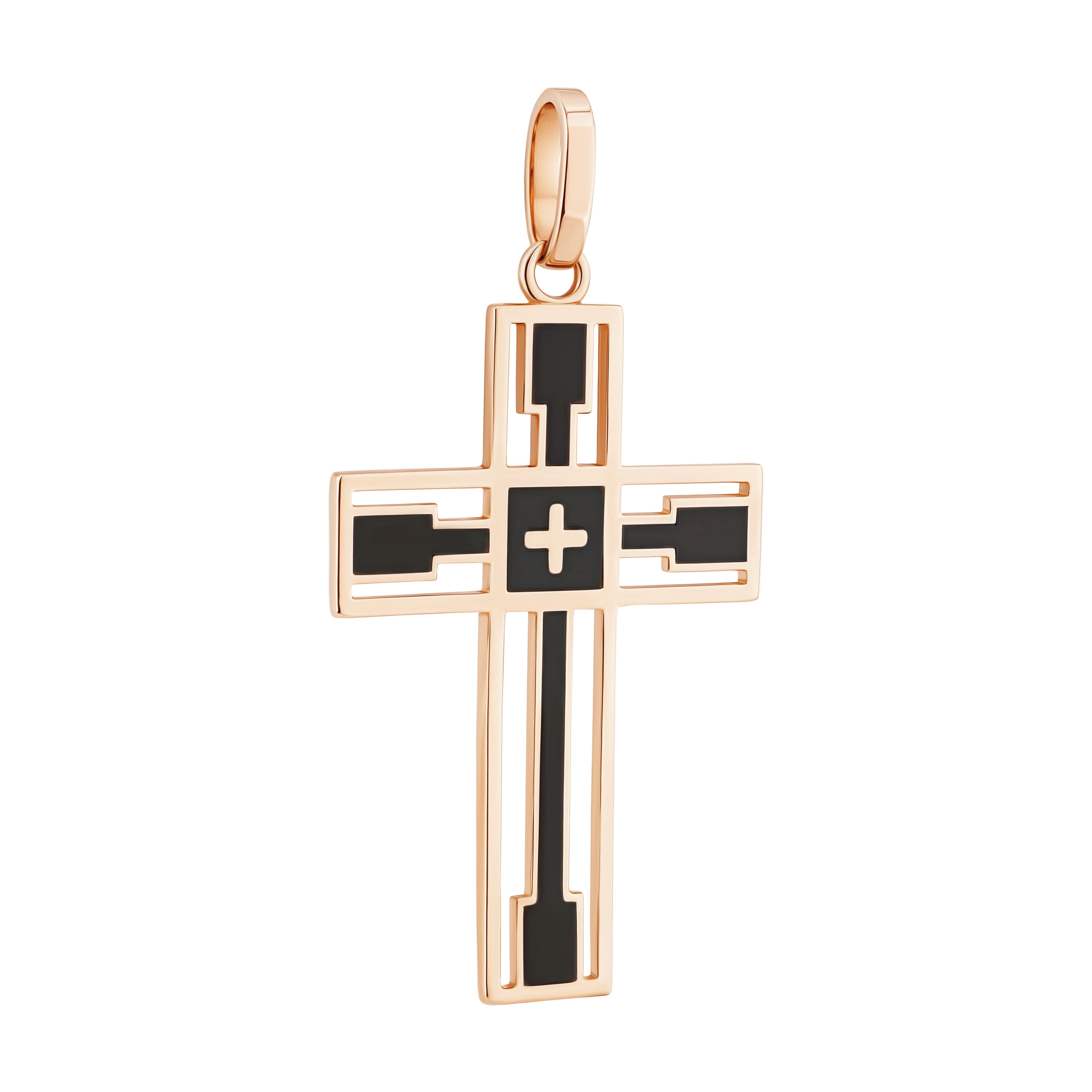Декоративный крестик в красном золоте с эмалью - 2178165