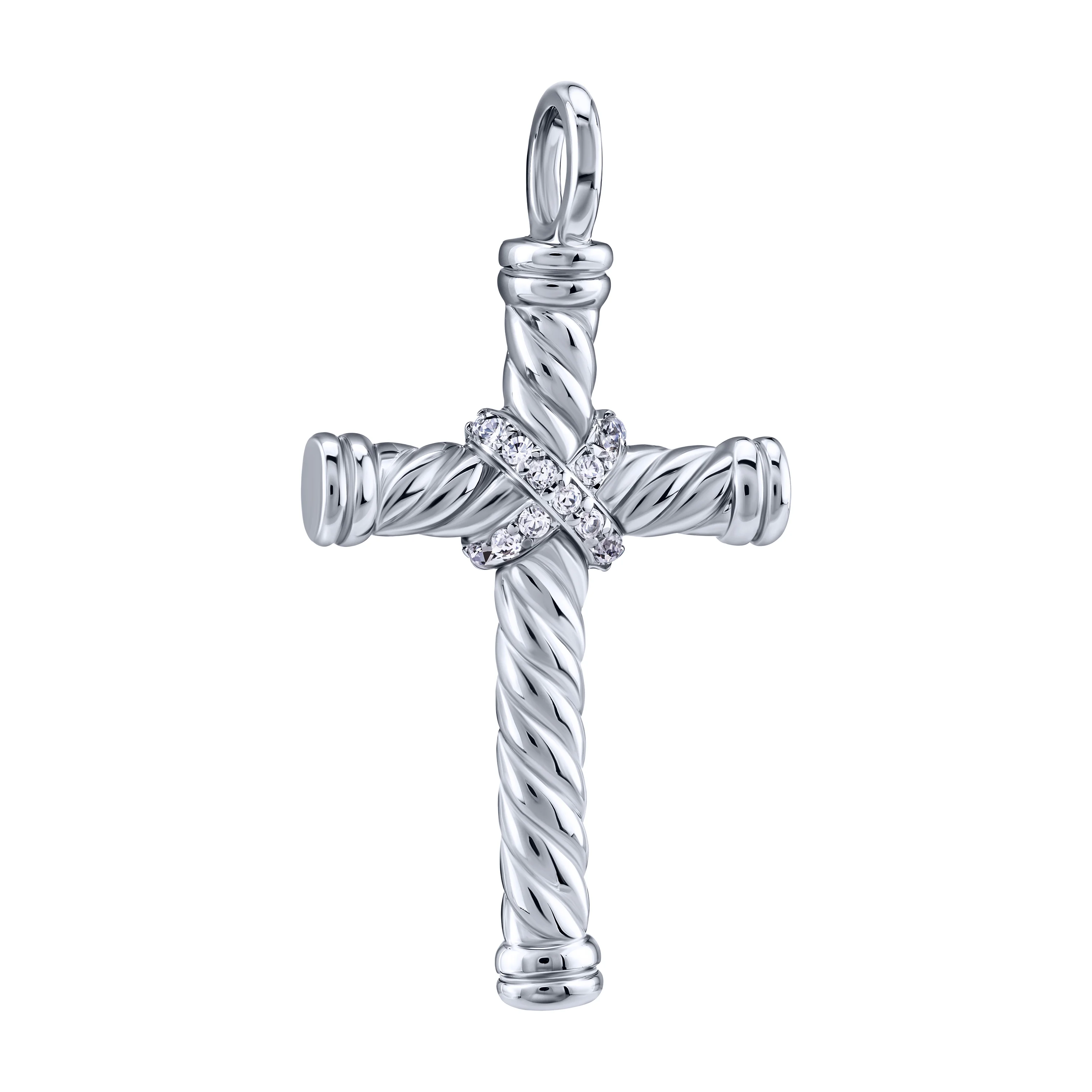 Декоративный крестик в серебре с фианитами - 2092331