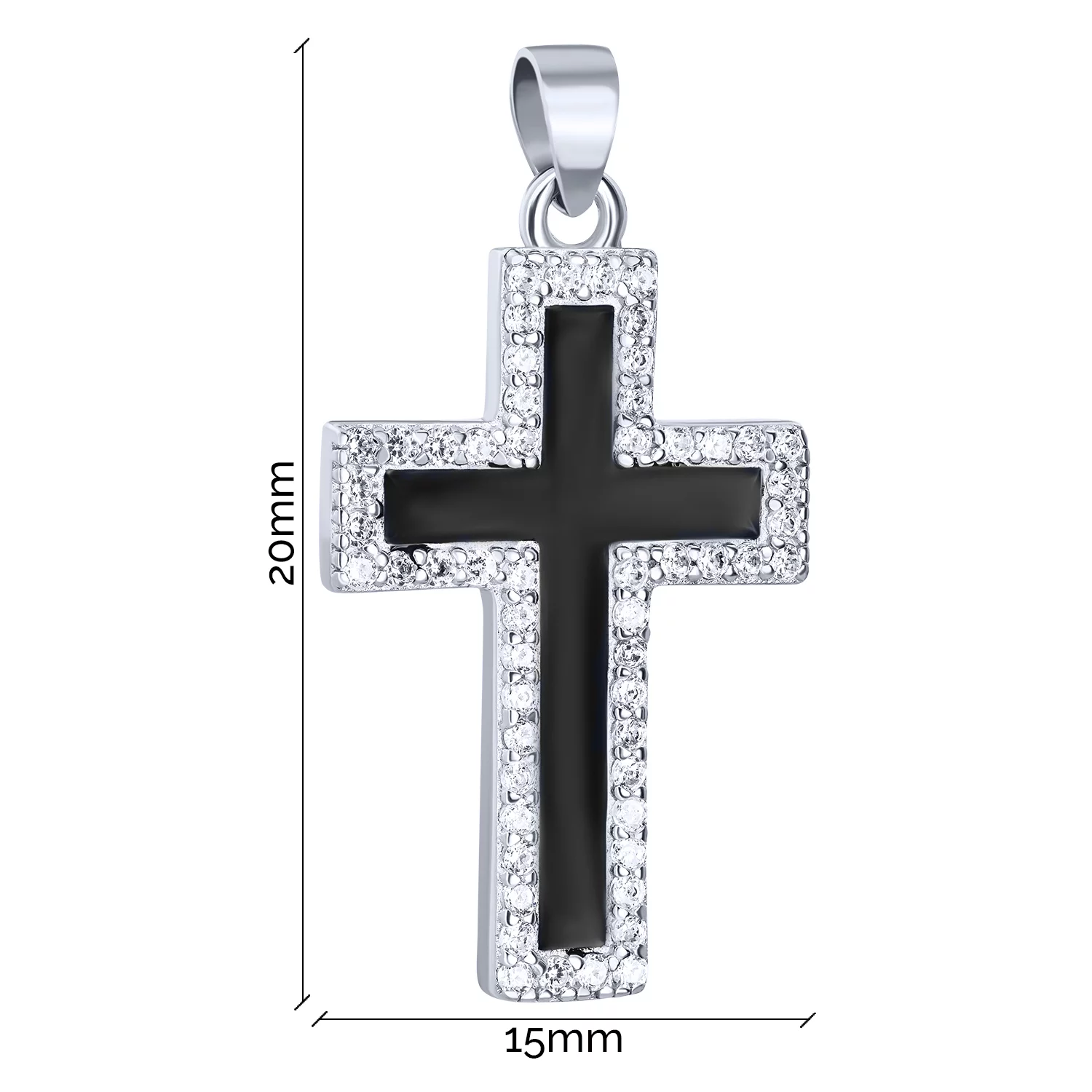 Декоративный серебряный крестик с эмалью и фианитами - 1612875