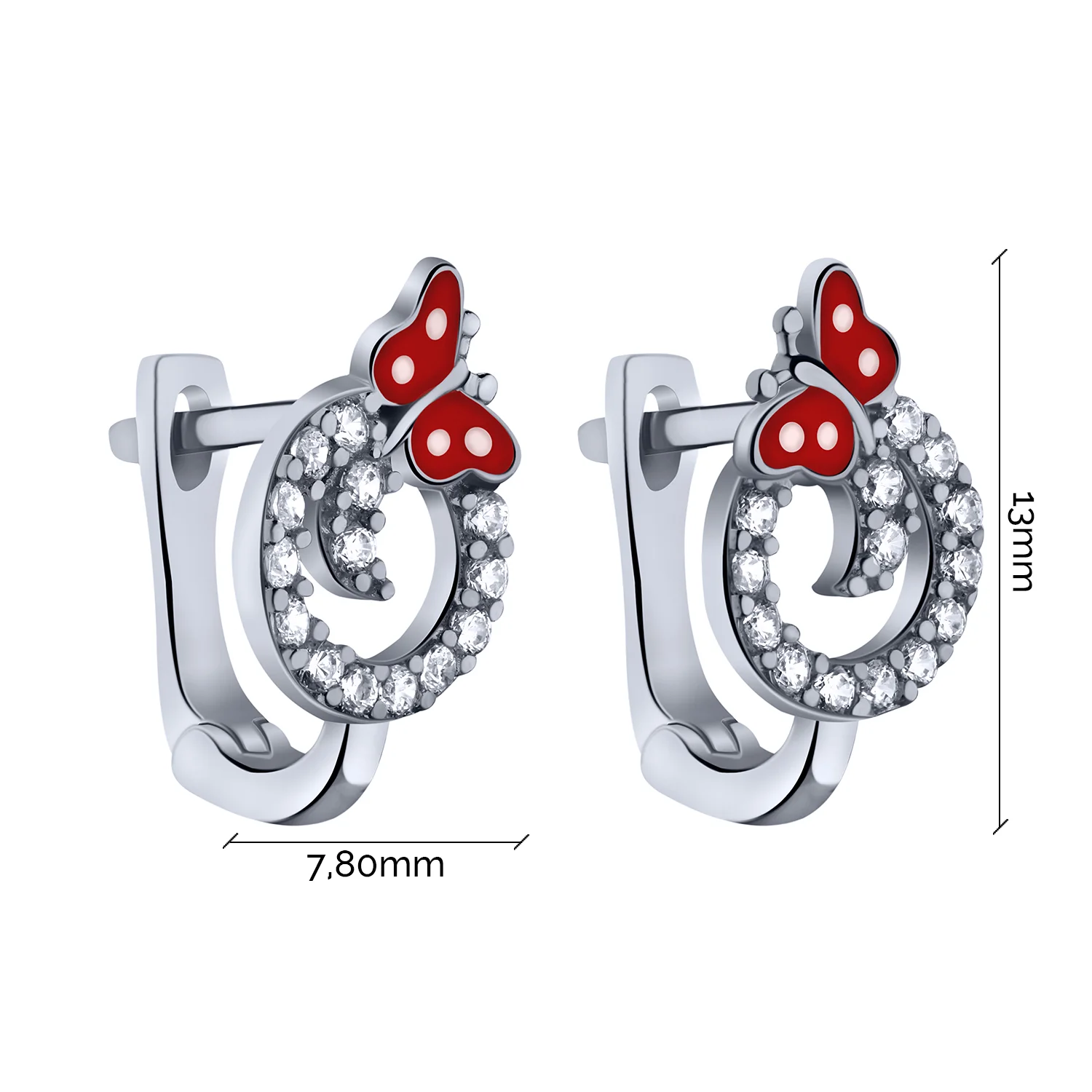 Детские серебряные серьги "Мотылек" с фианитами и эмалью - 2011383