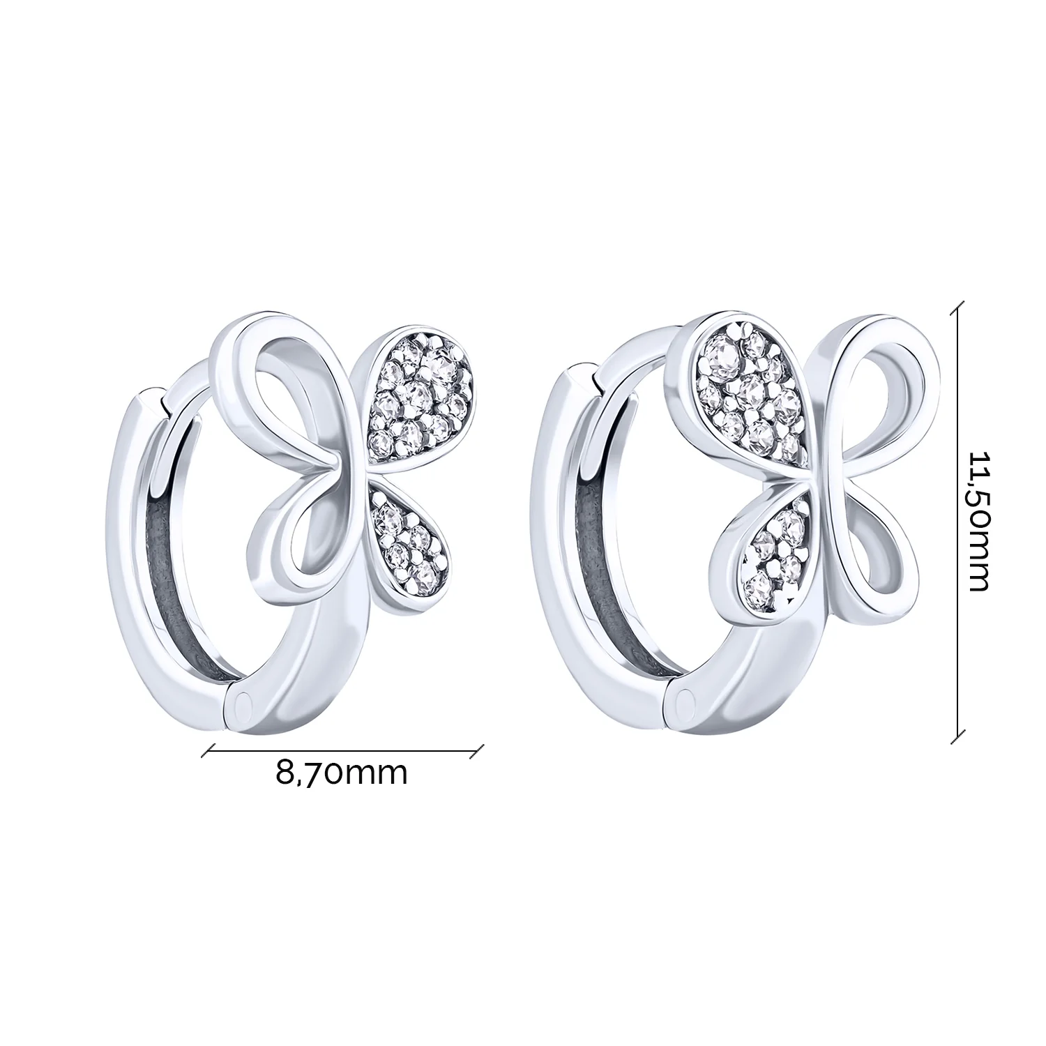 Детские серебряные серьги-кольца "Мотылек" с фианитами - 2091677