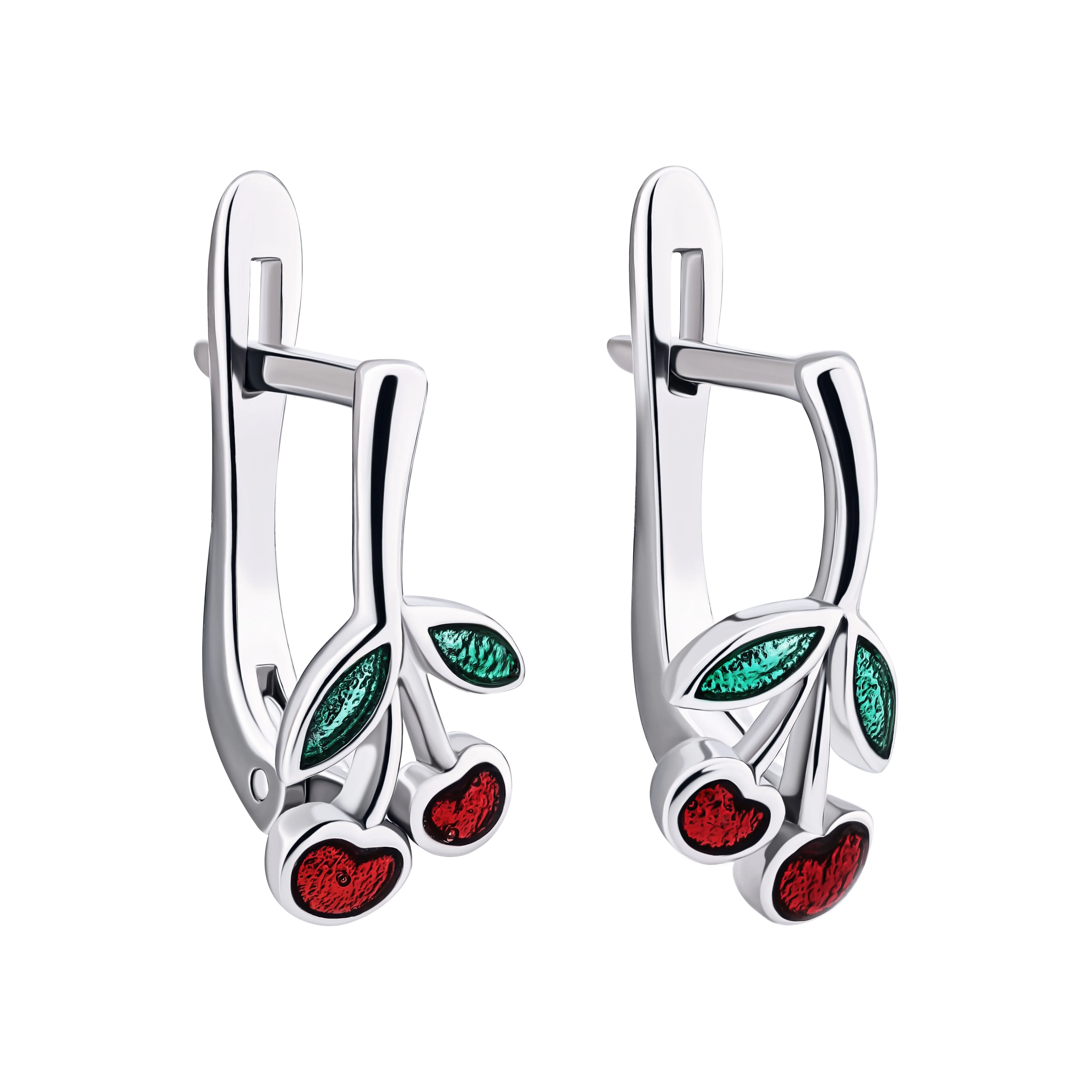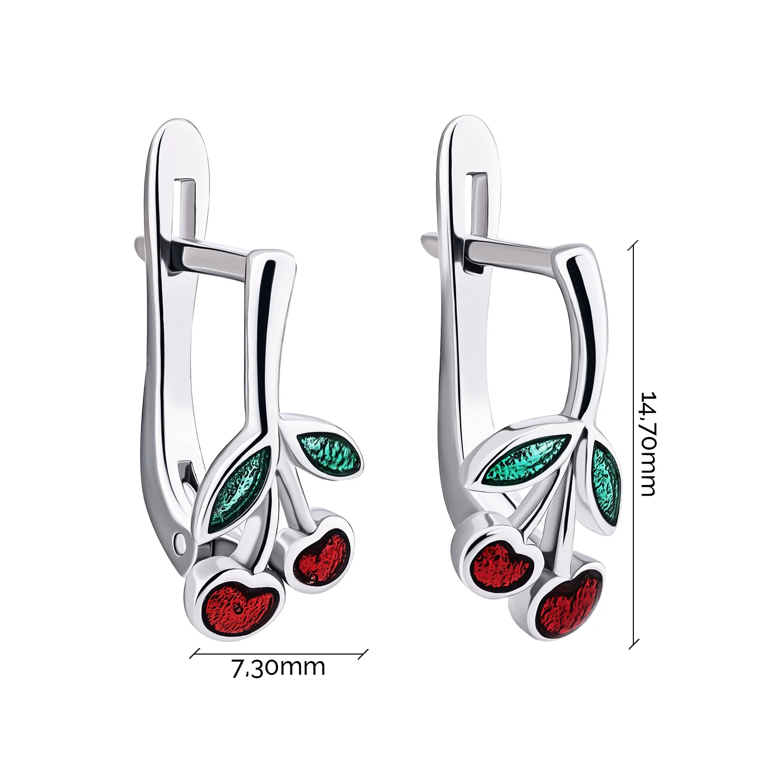 Детские серебряные серьги "Вишеньки" с эмалью - 2112409