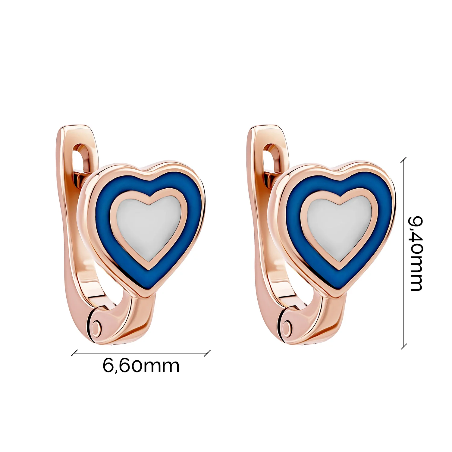 Детские сережки "Сердце" из красного золота с эмалью - 1976093