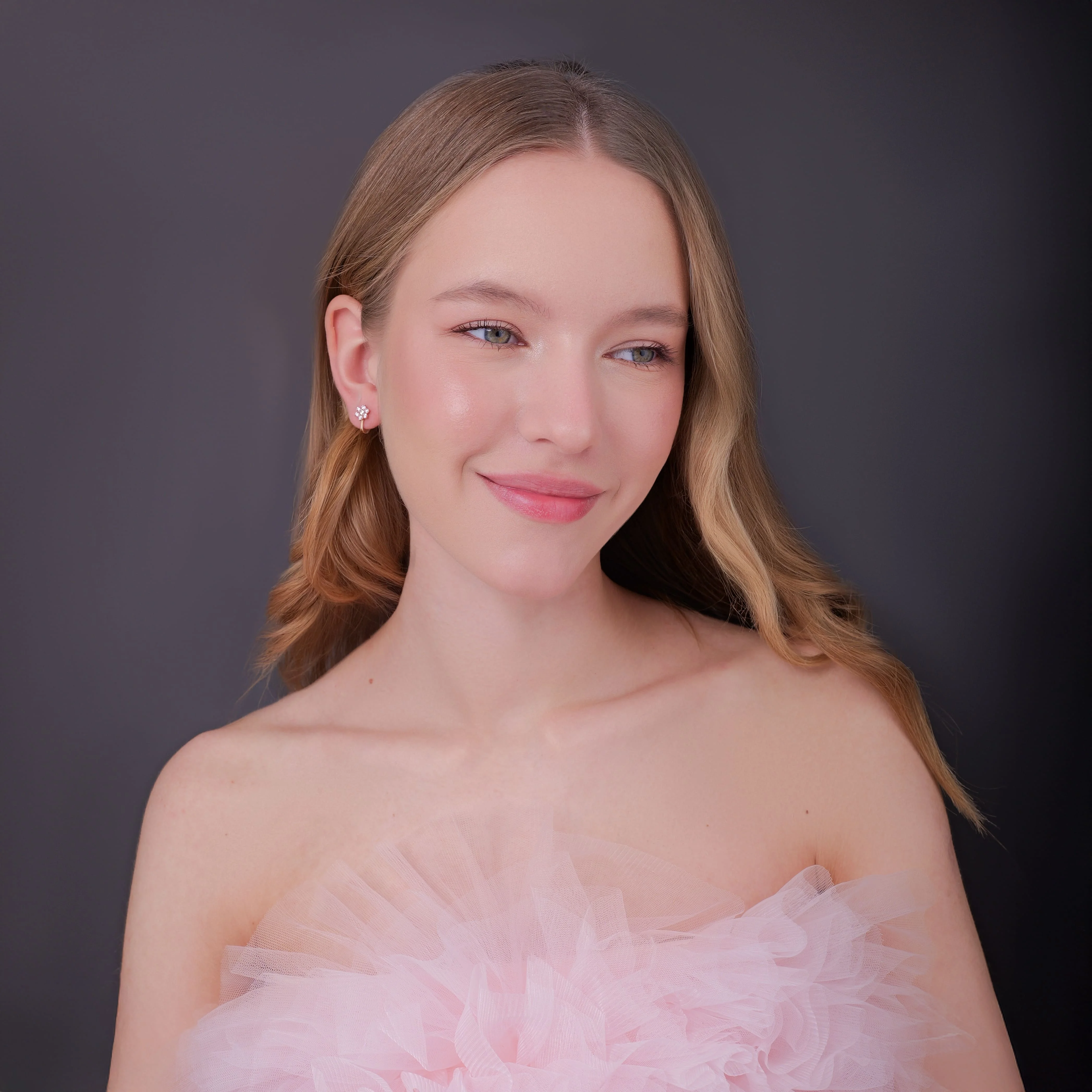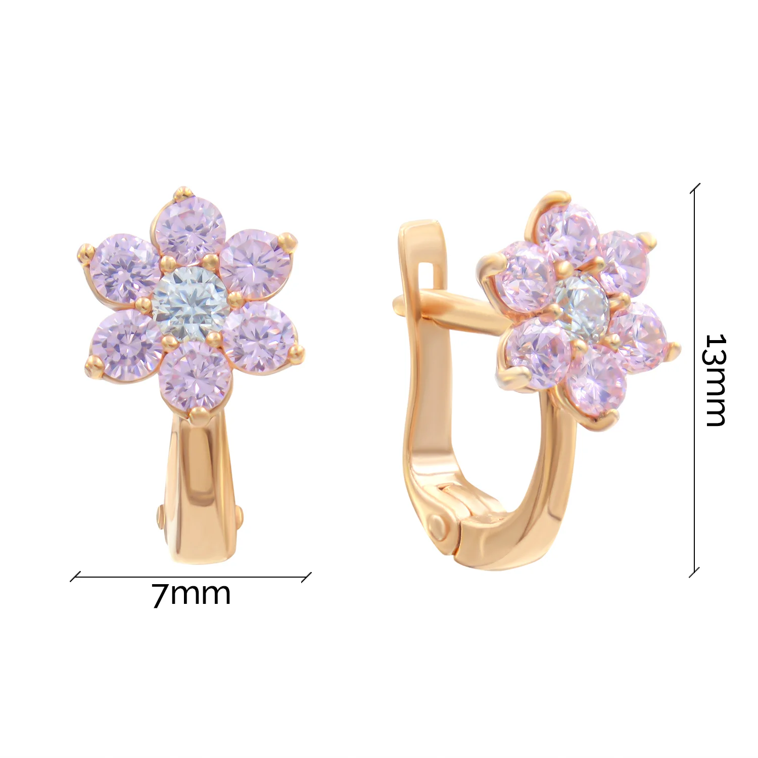 Детские сережки "Цветок" в красном золоте с фианитами - 1984611