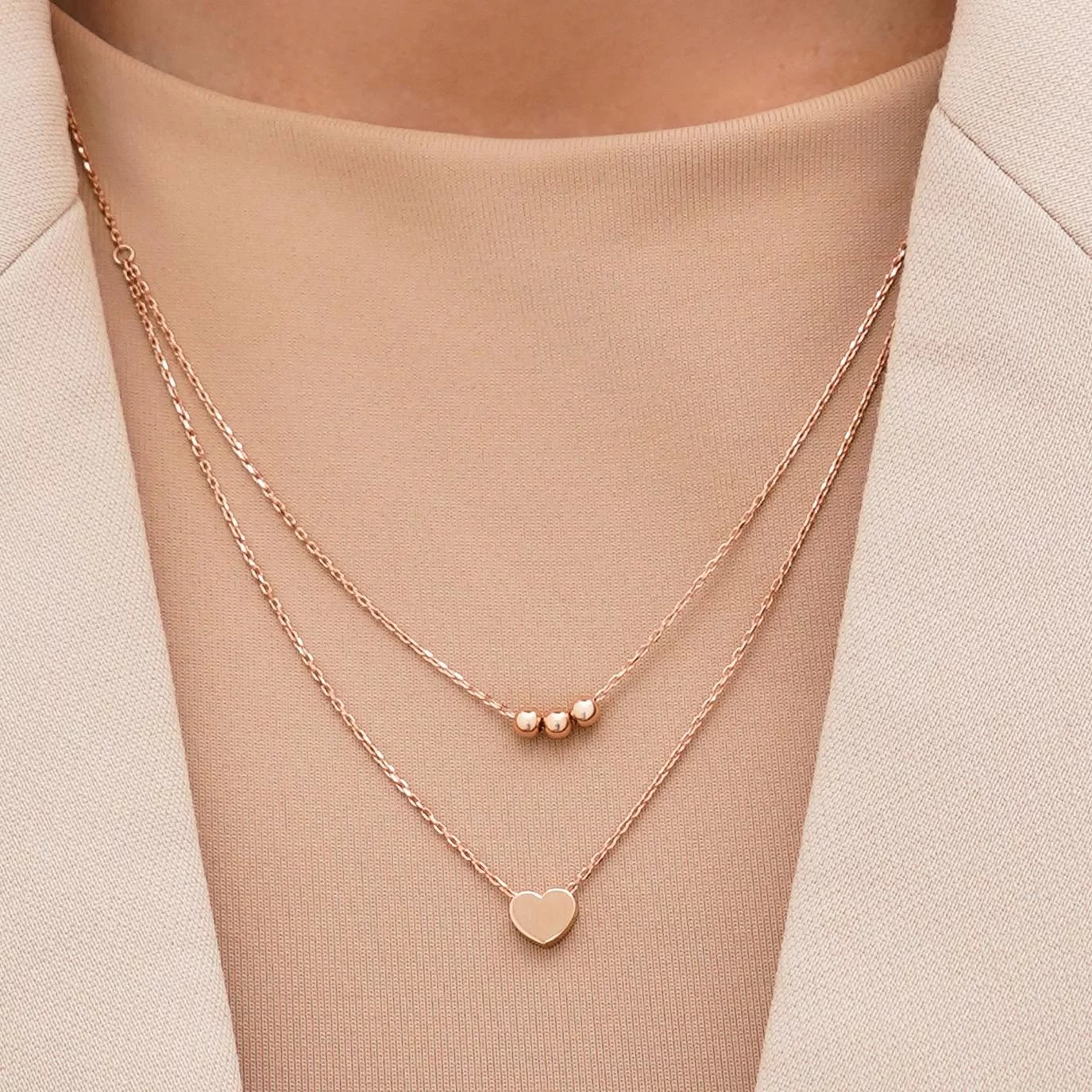 Элегантное колье-галстук "Сердце" в красном золоте с якорным плетением - 1916574