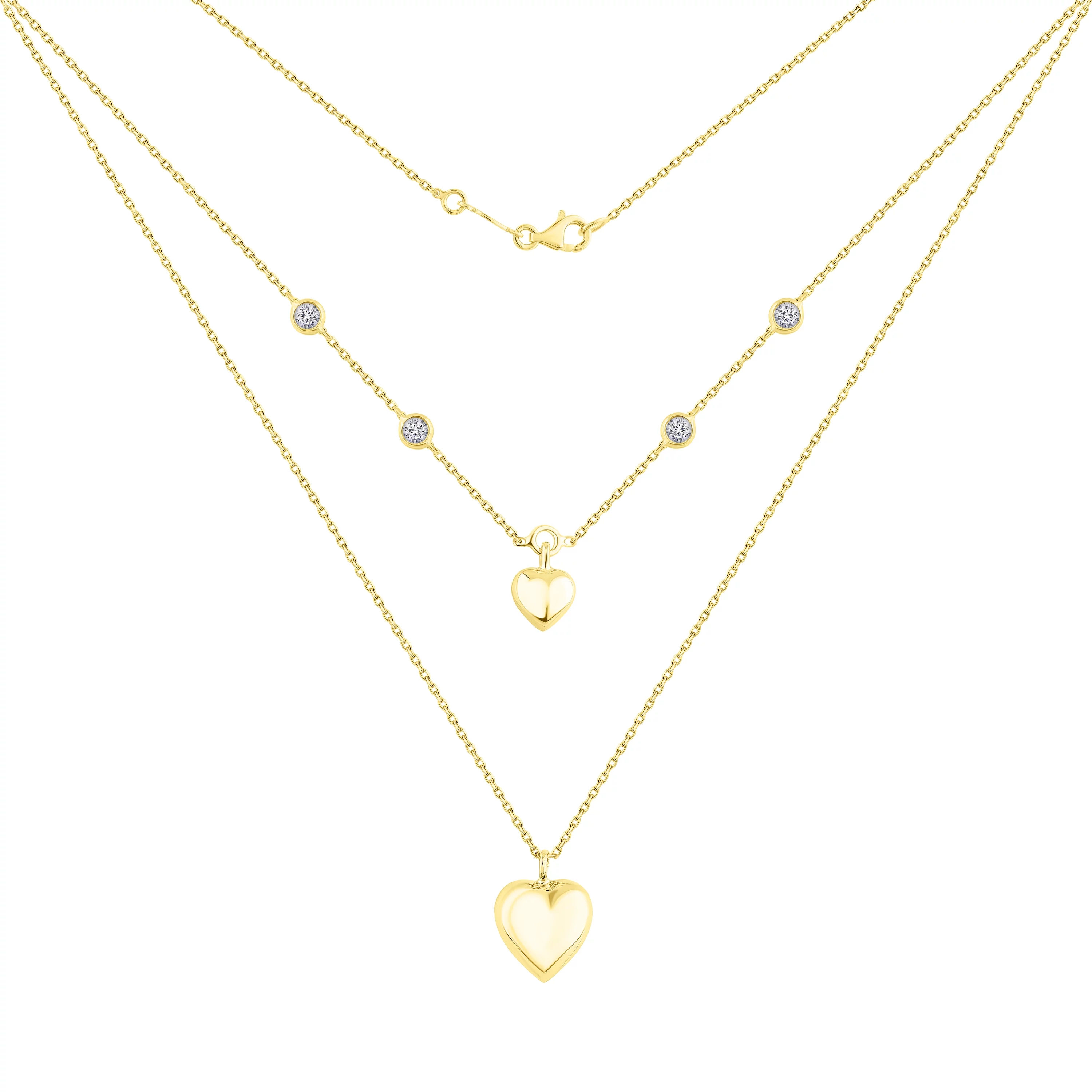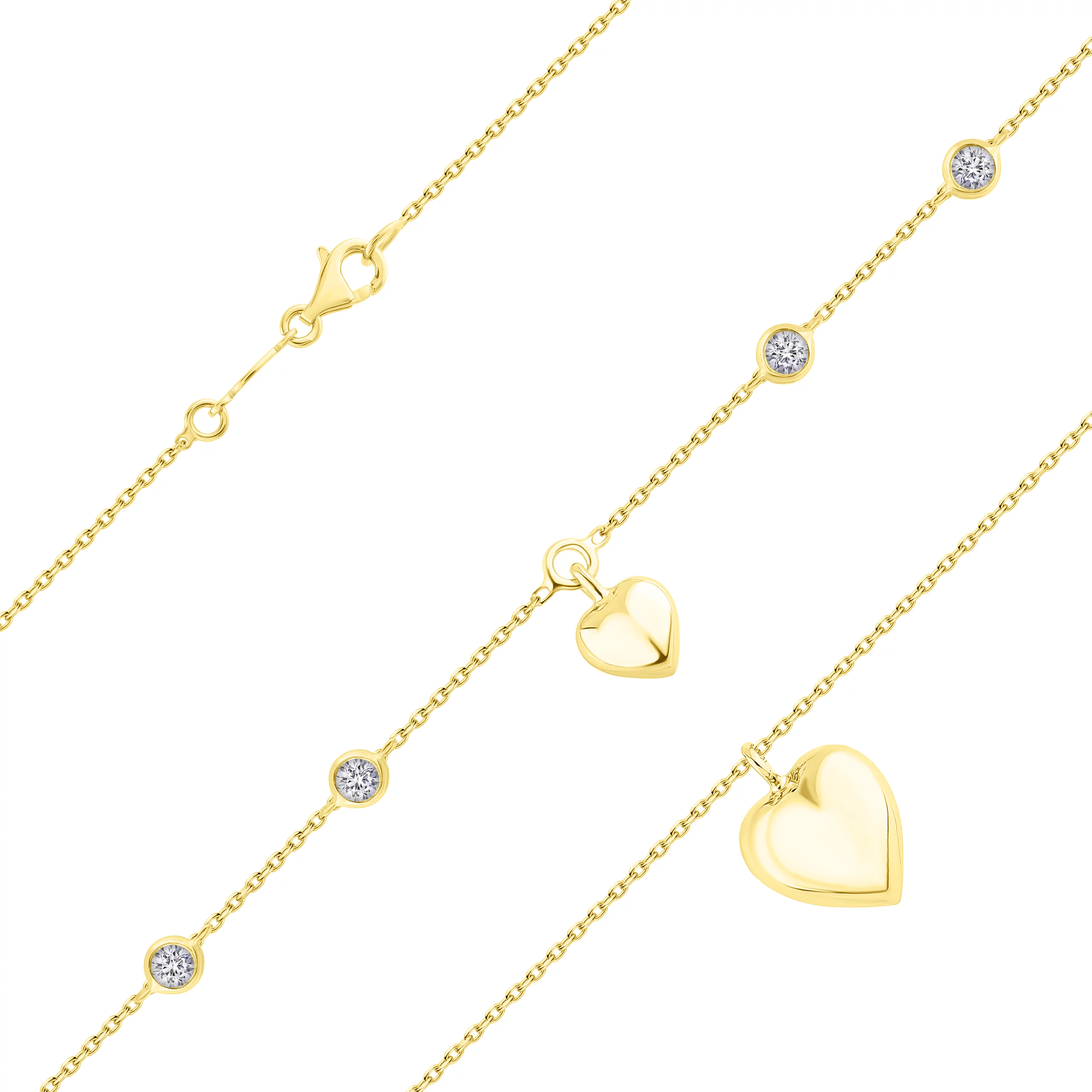 Колье-галстук из лимонного золота с подвесом "Сердце" с фианитами якорное плетение - 1810519