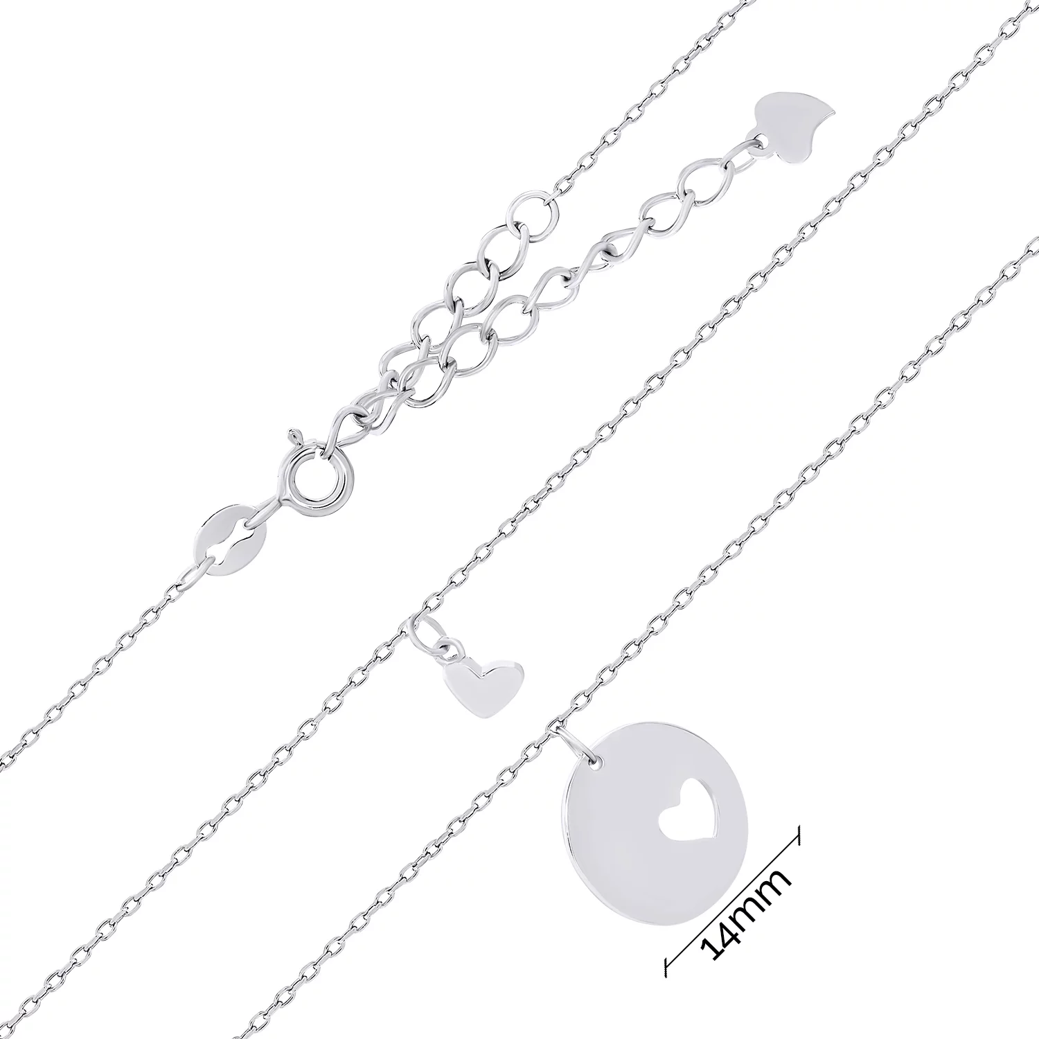 Серебряное колье с подвесом "Love" с фианитами плетение якорное - 1517258