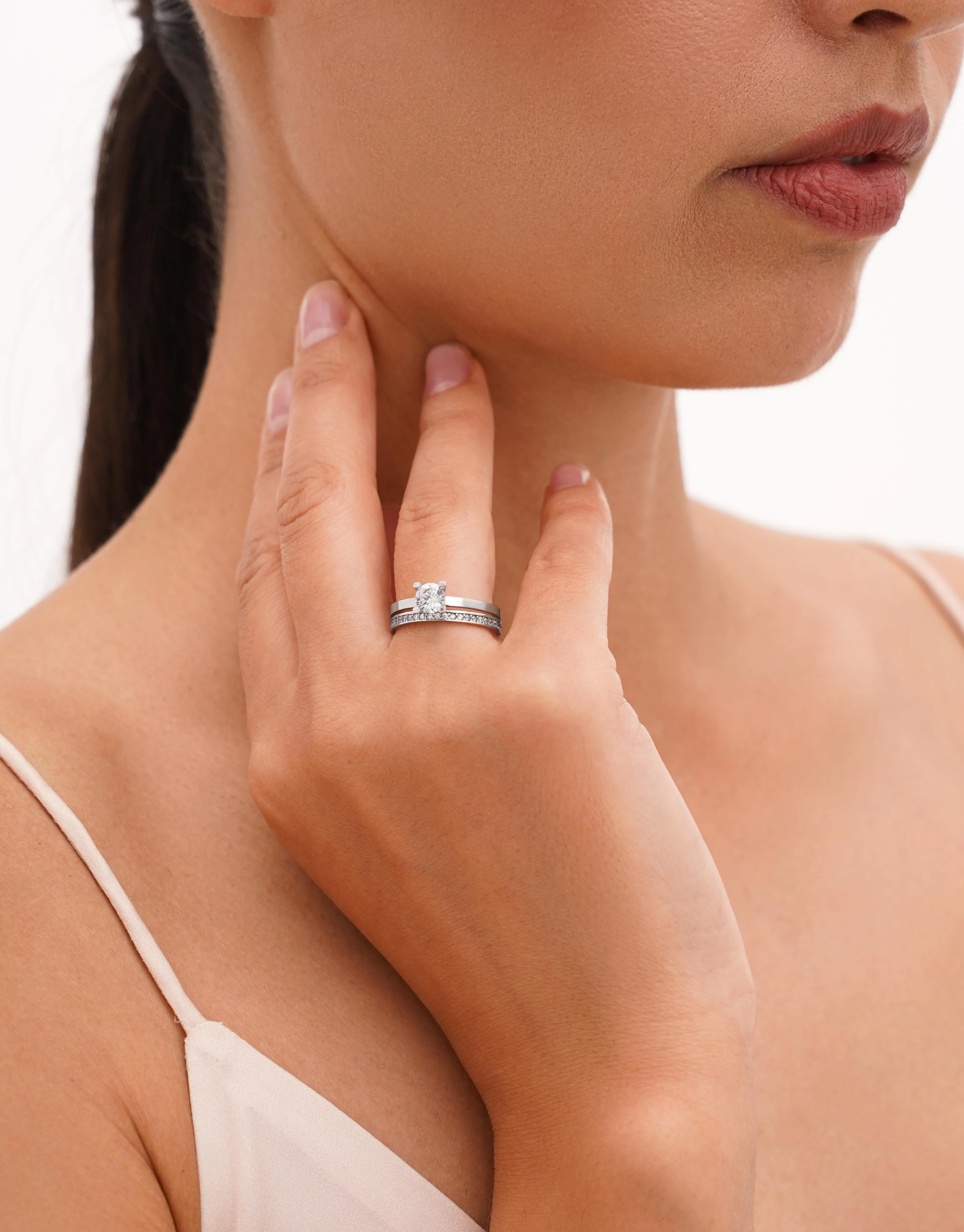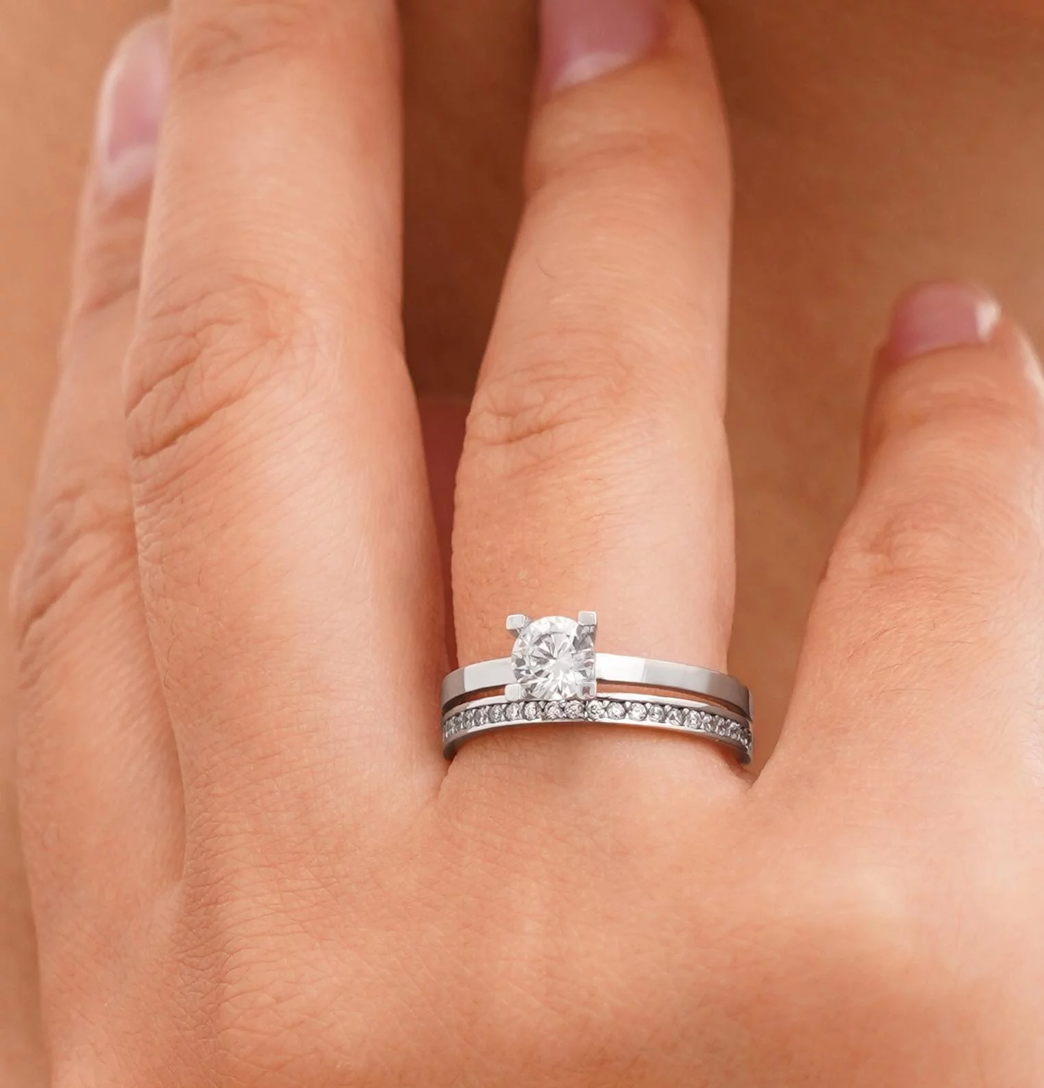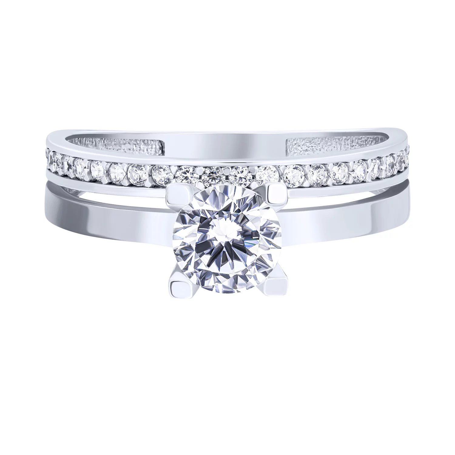 Кольцо из комбинированного золота в минималистичном стиле с фианитом - 1878027