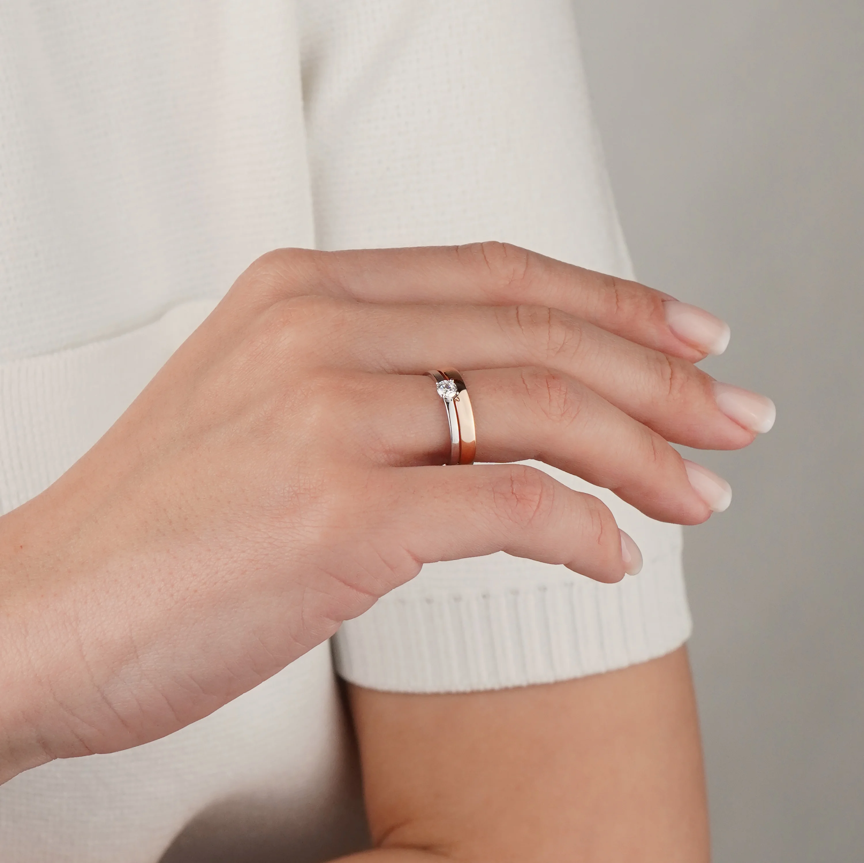 Двойное кольцо из красного и белого золота с фианитом - 2118544