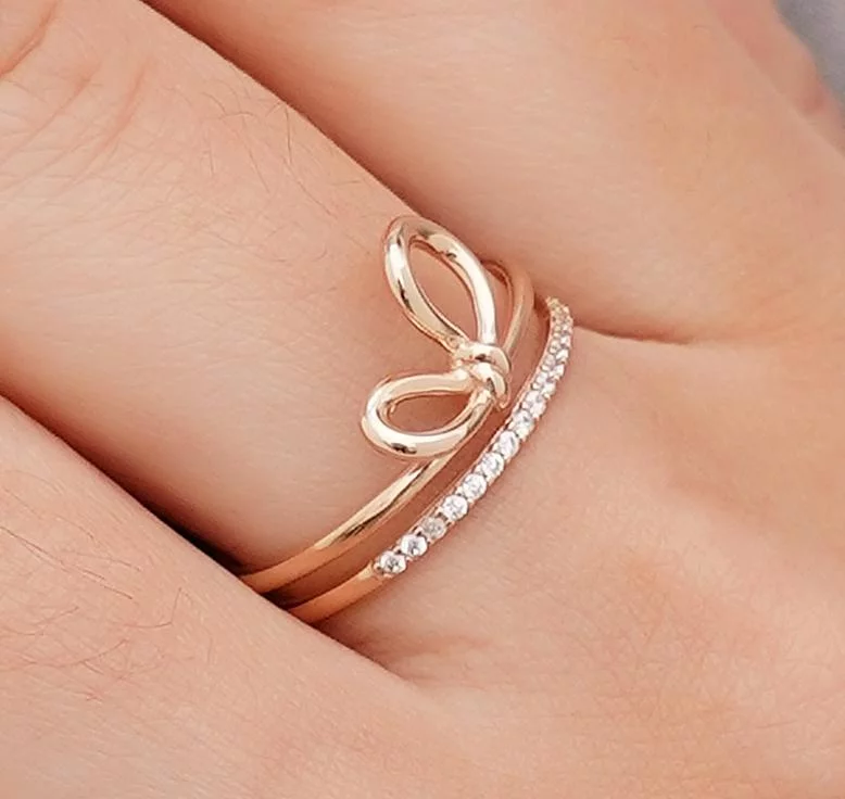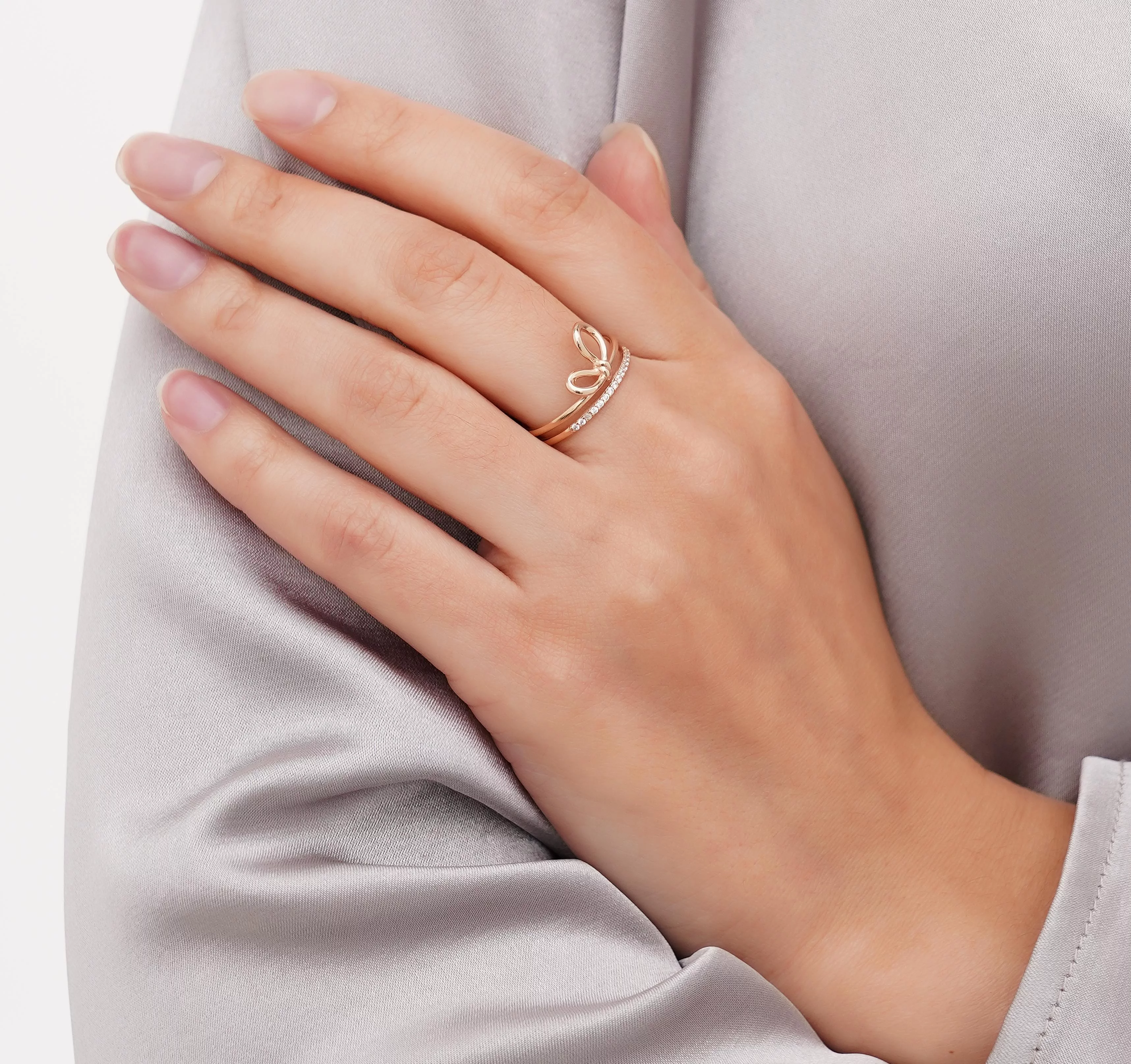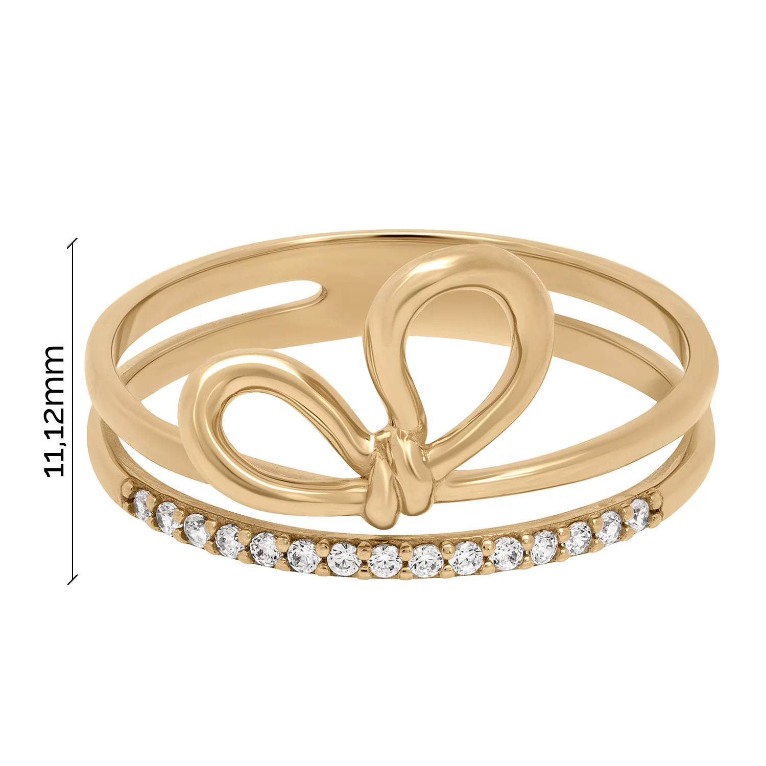 Двойное кольцо из красного золота "Бантик" с фианитами - 1690337