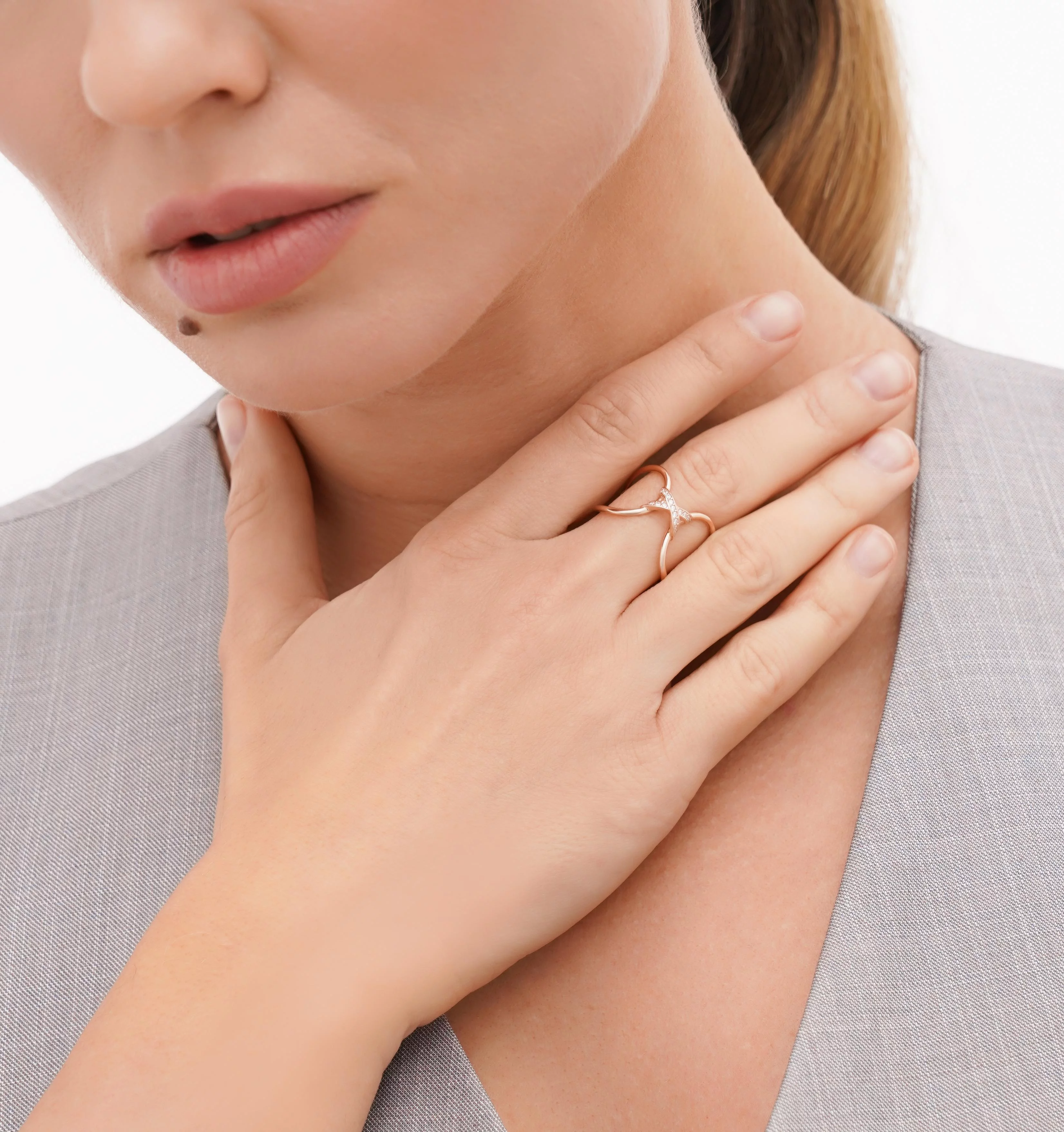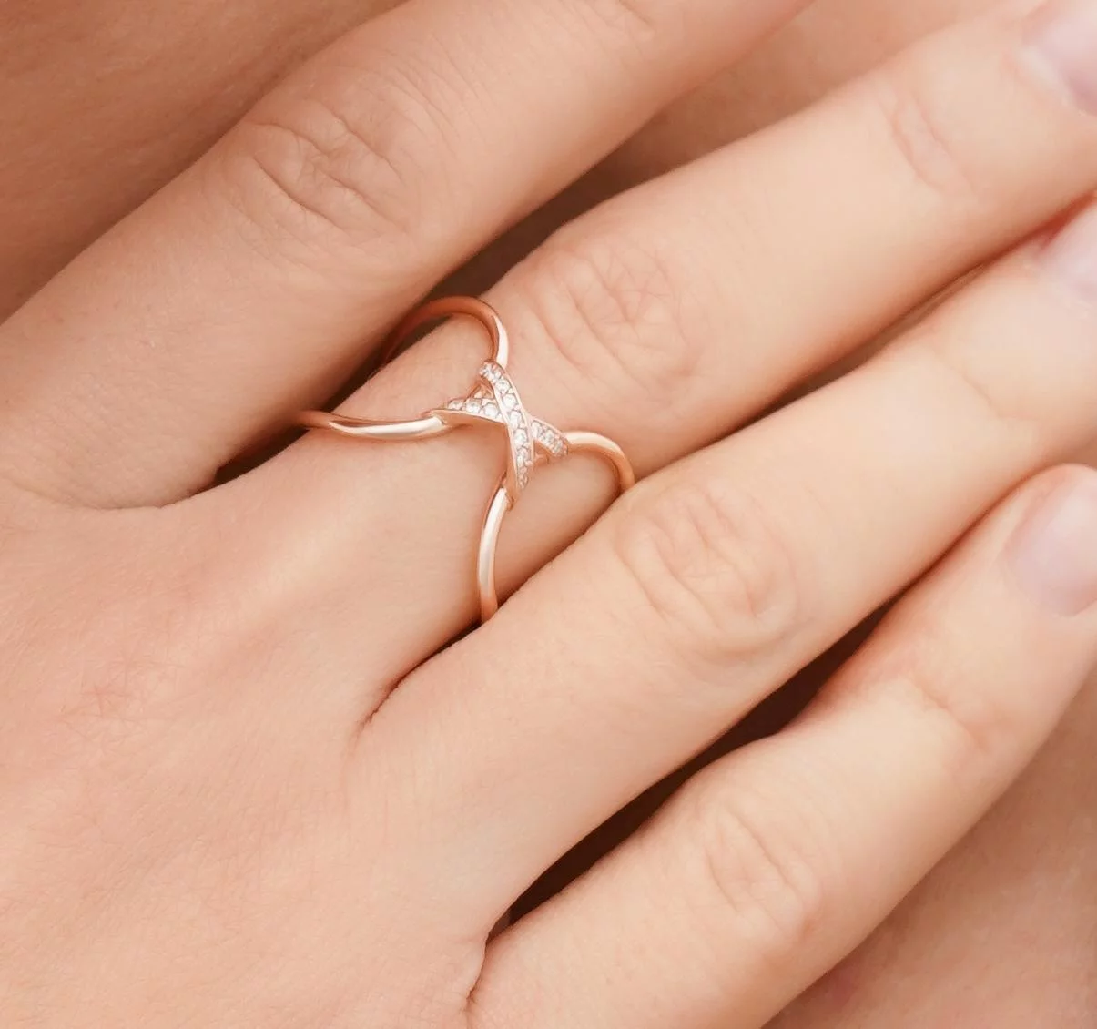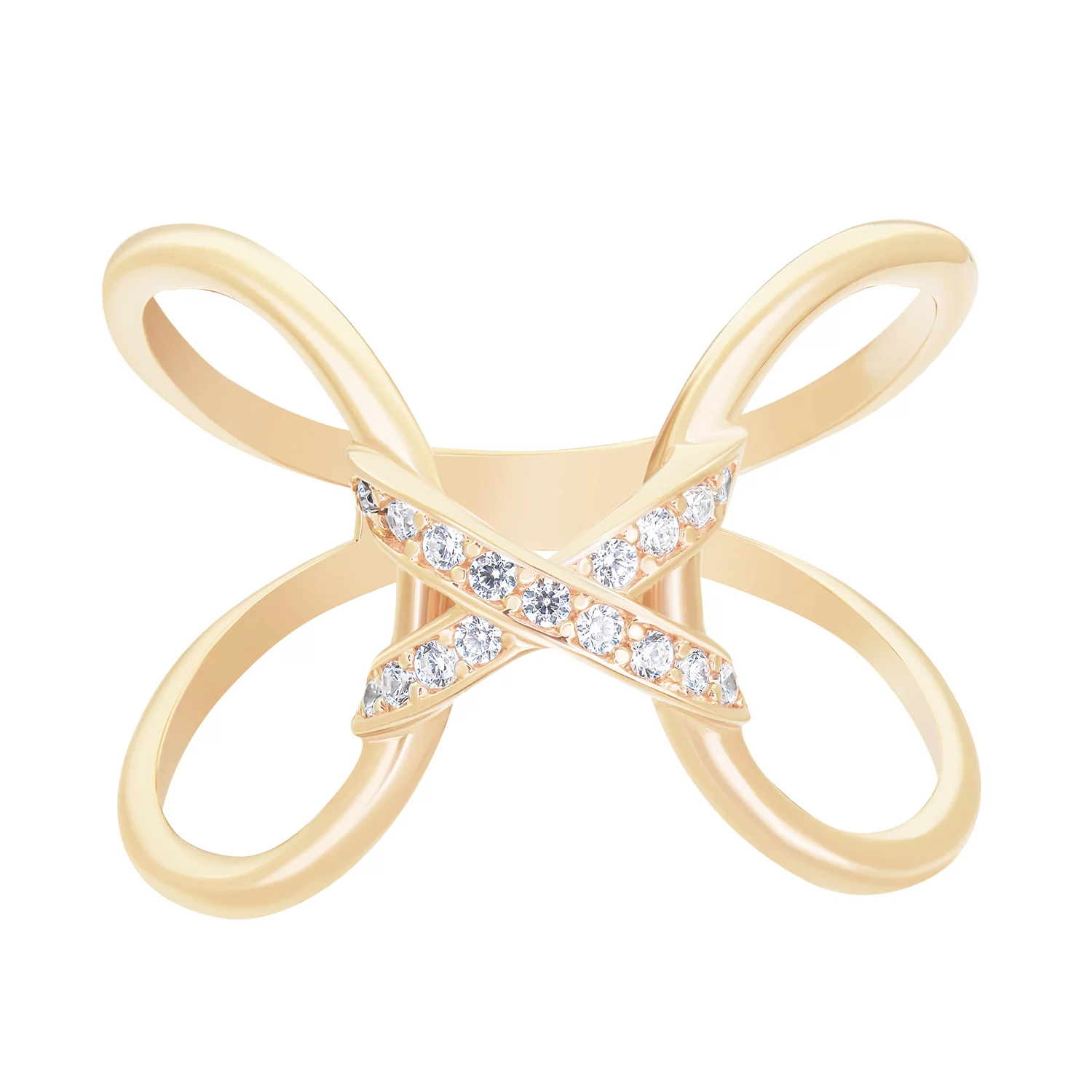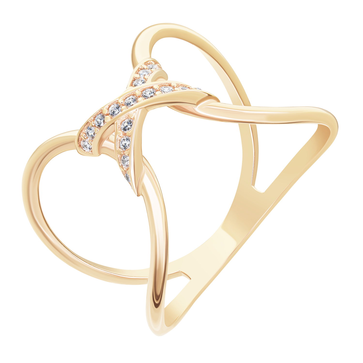 Двойное кольцо из красного золота с фианитами - 1613767