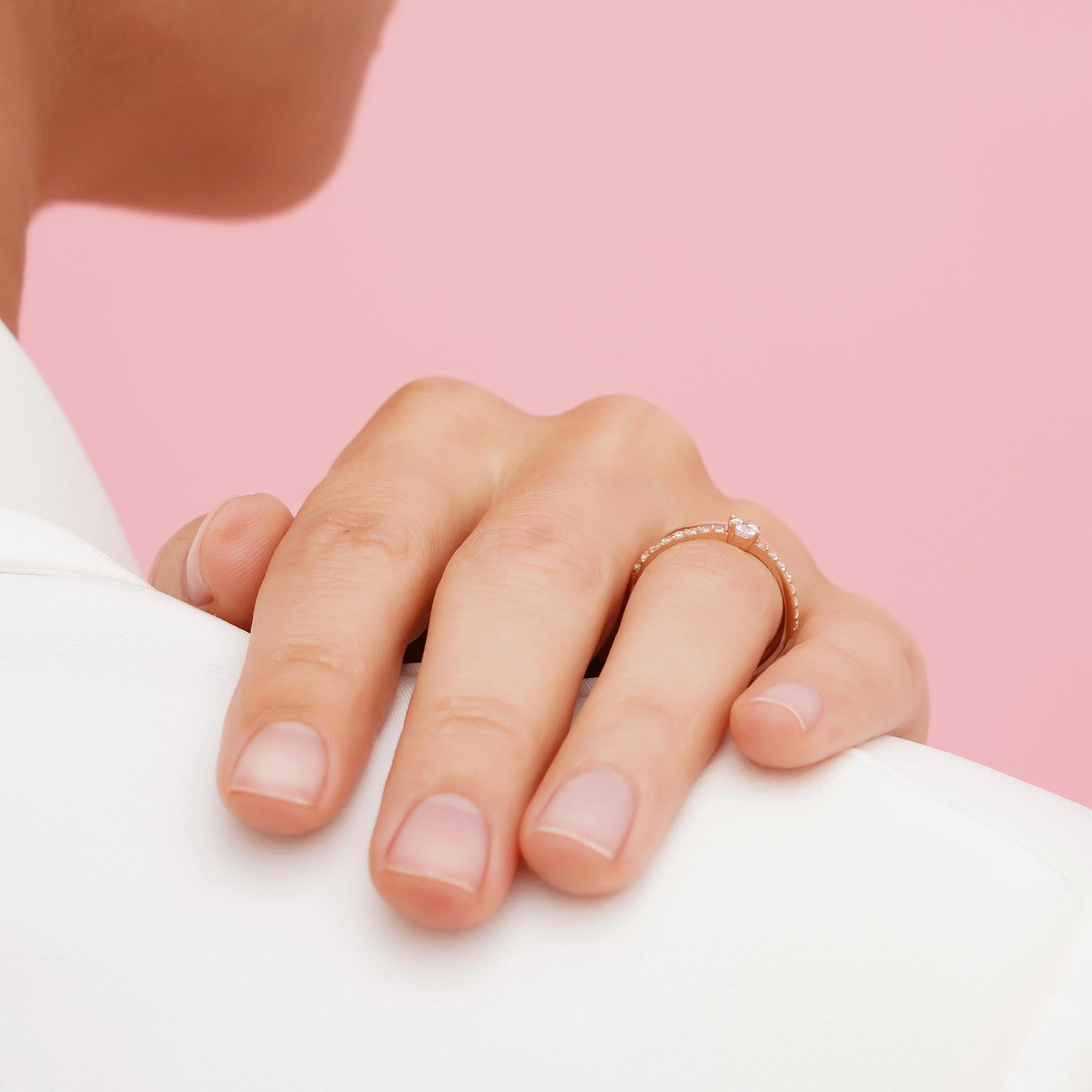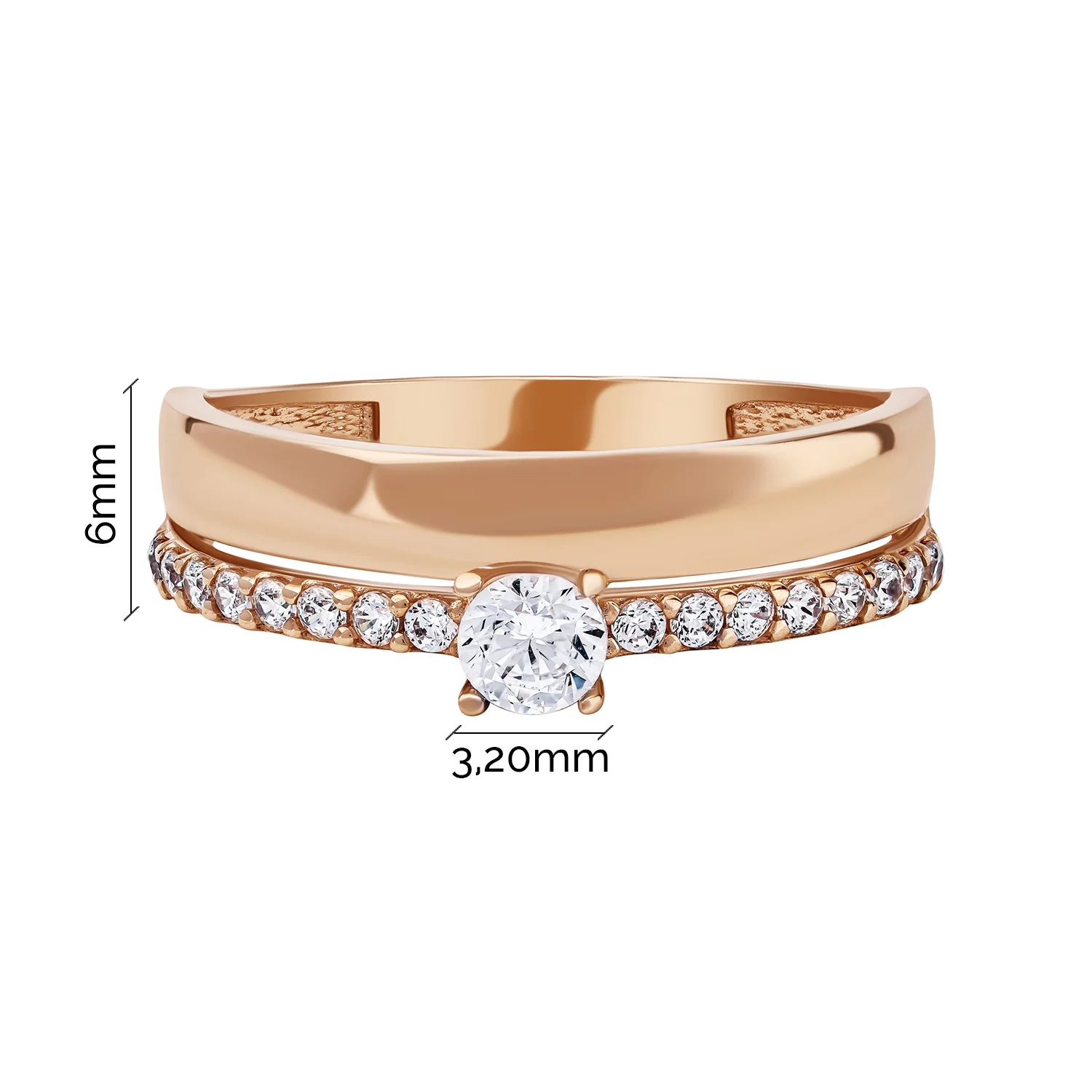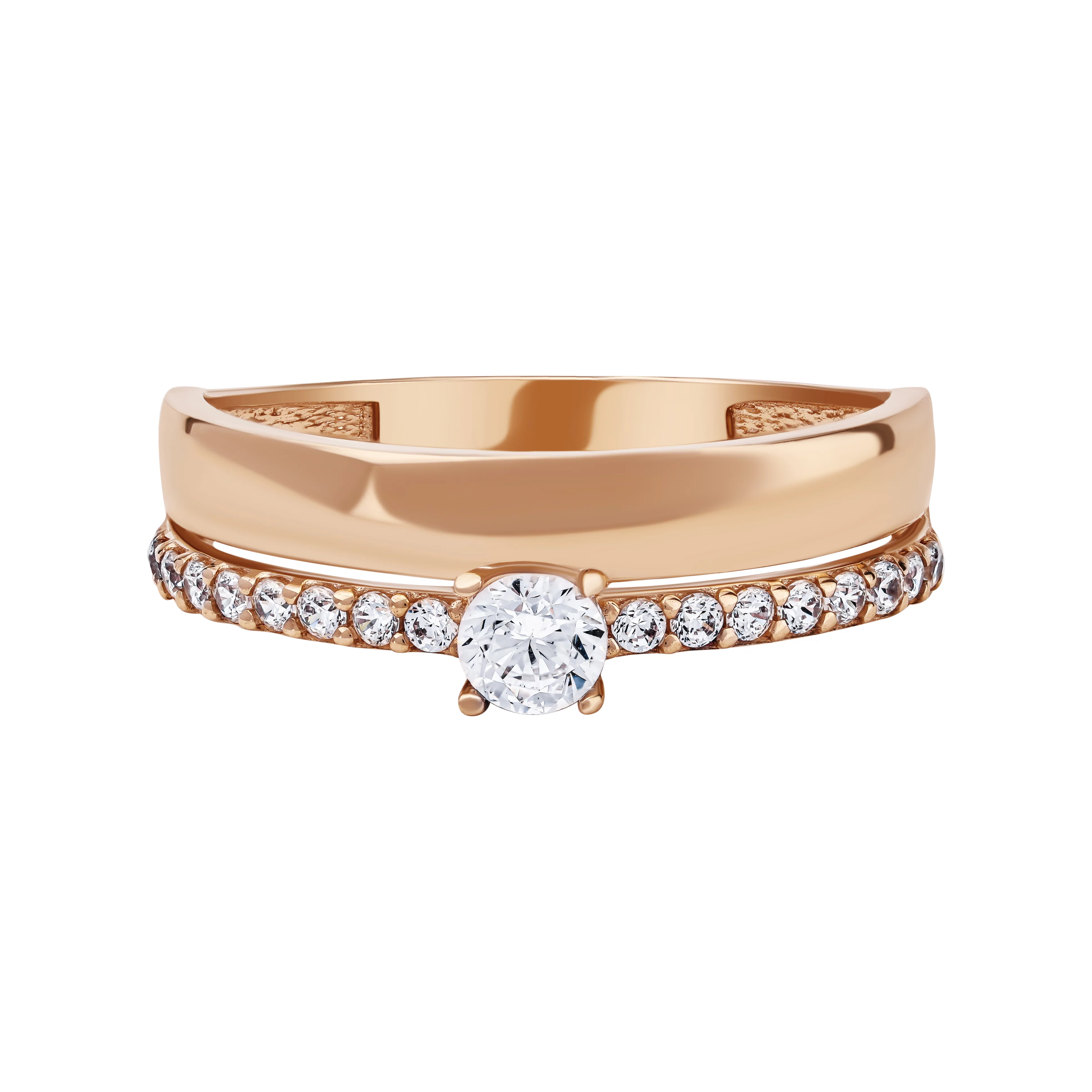 Двойное кольцо "Переплетение" с фианитами из красного золота - 1736141