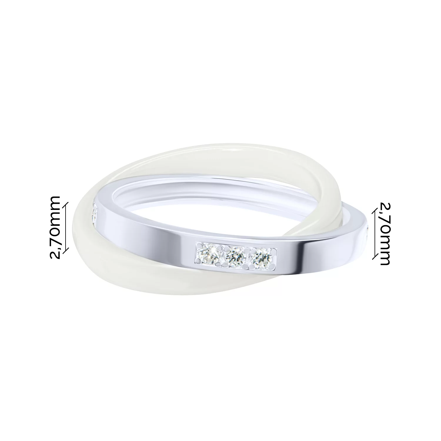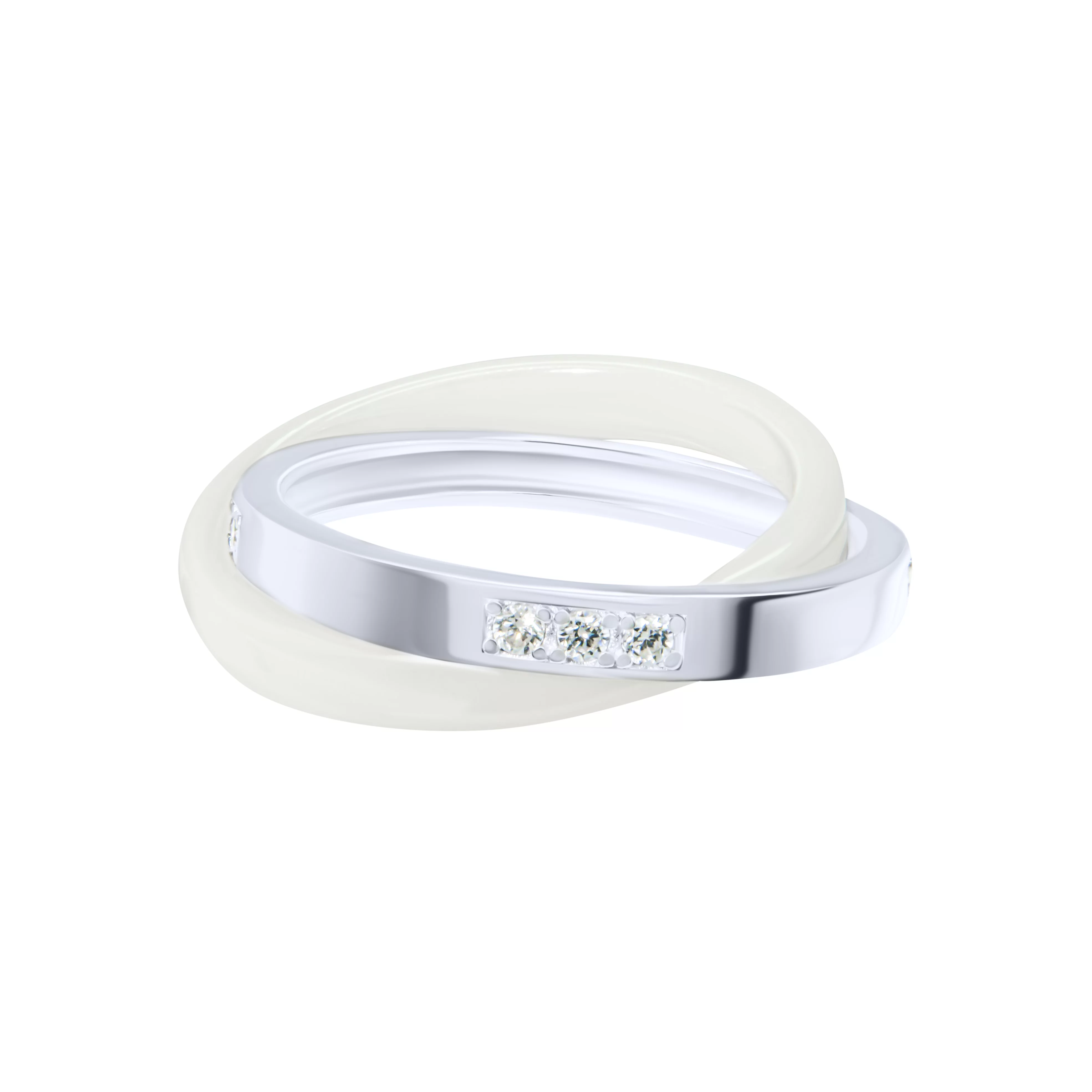 Двойное кольцо из серебра с керамикой и фианитами - 1814993