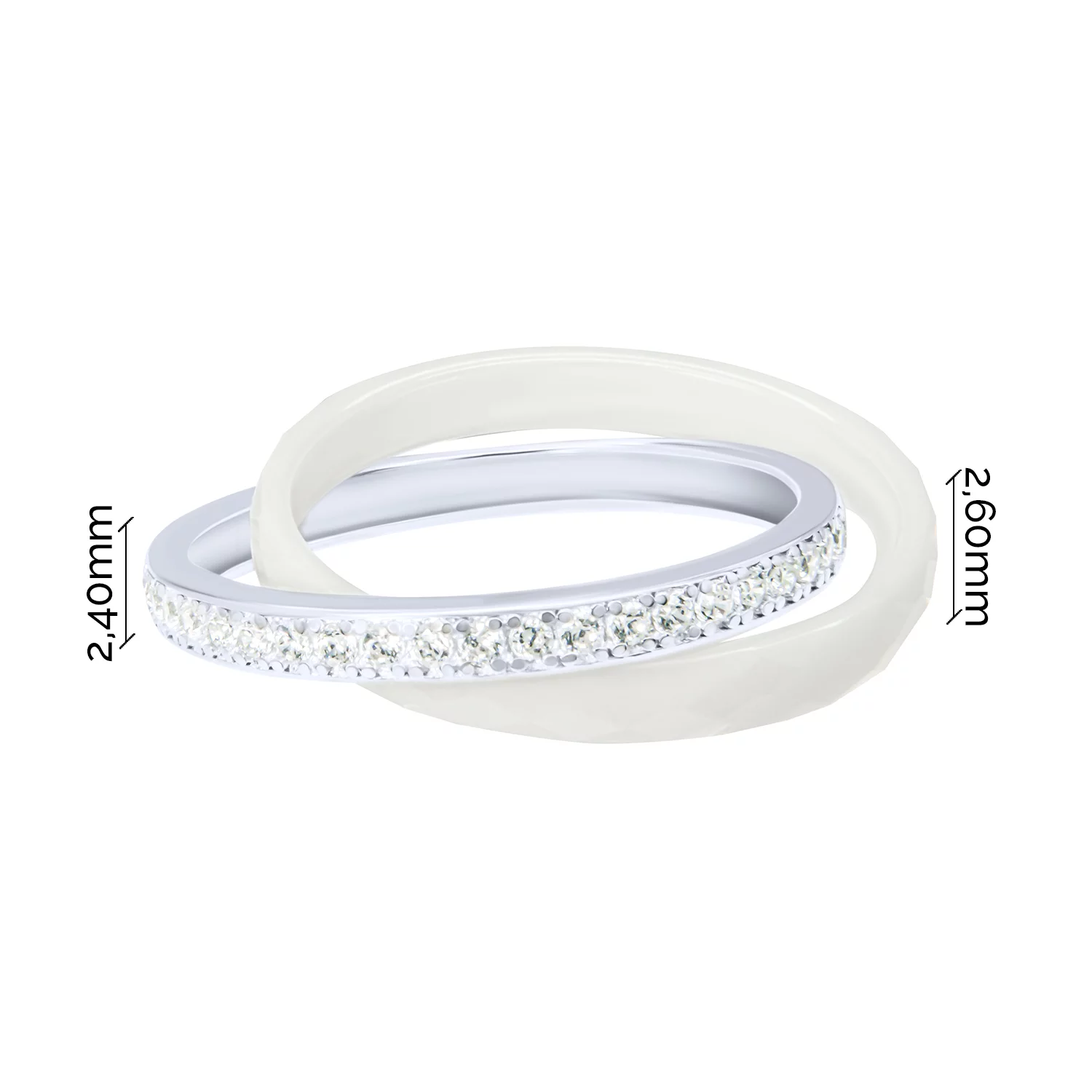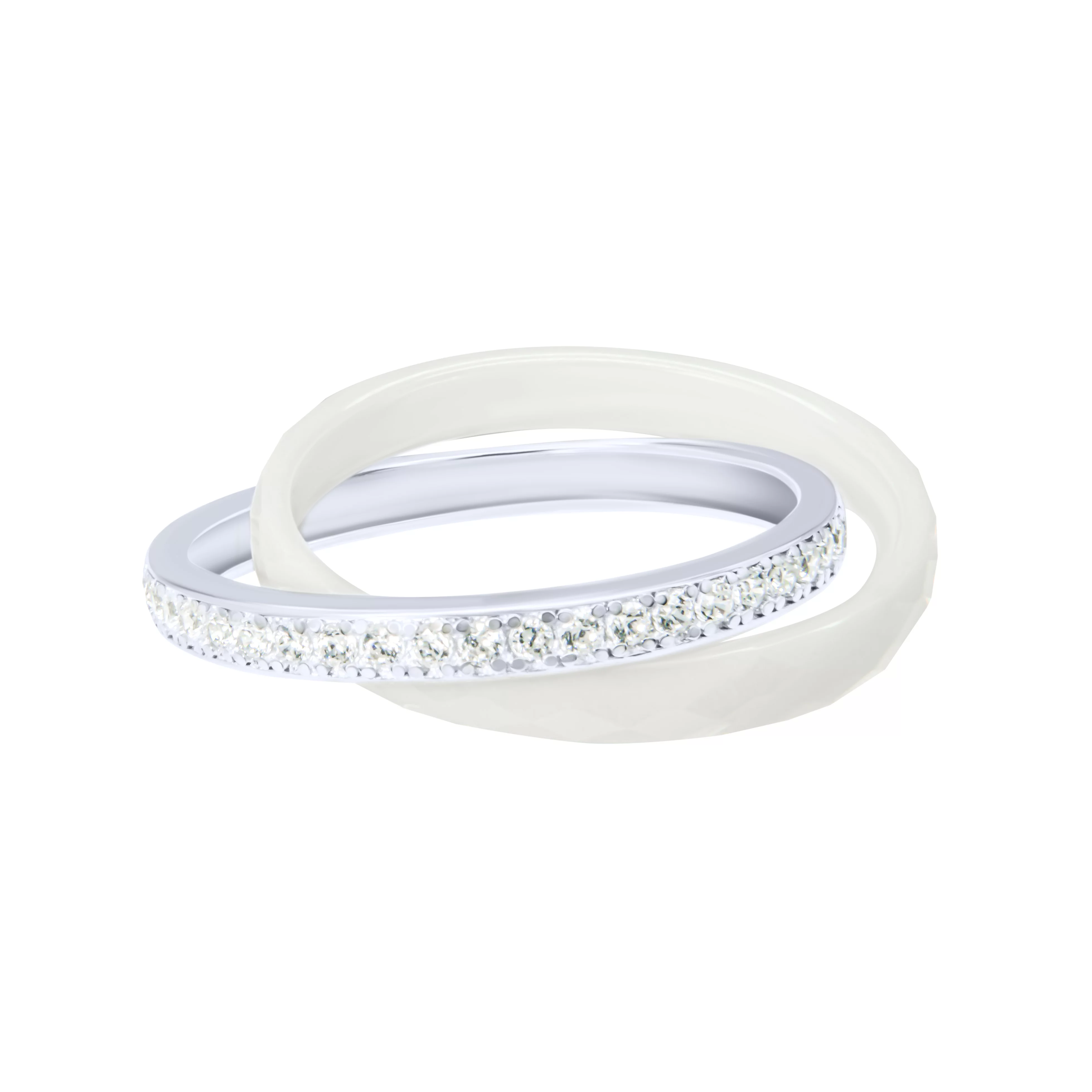 Двойное кольцо с фианитами в серебре с керамикой и гранями - 1814992