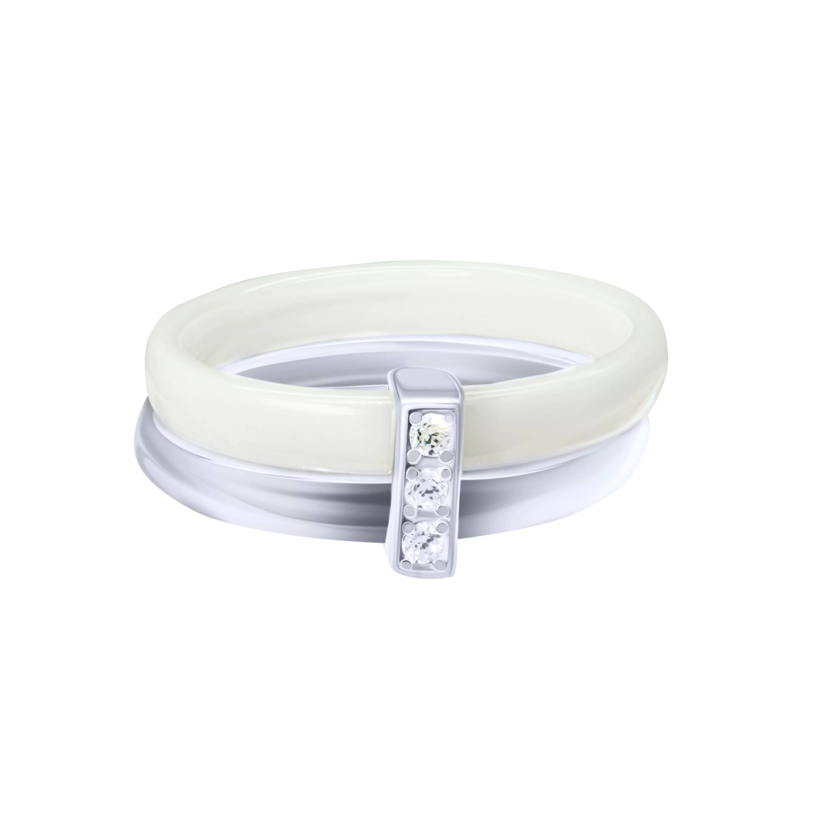 Двойное кольцо с керамикой в серебре с фианитами - 1815020