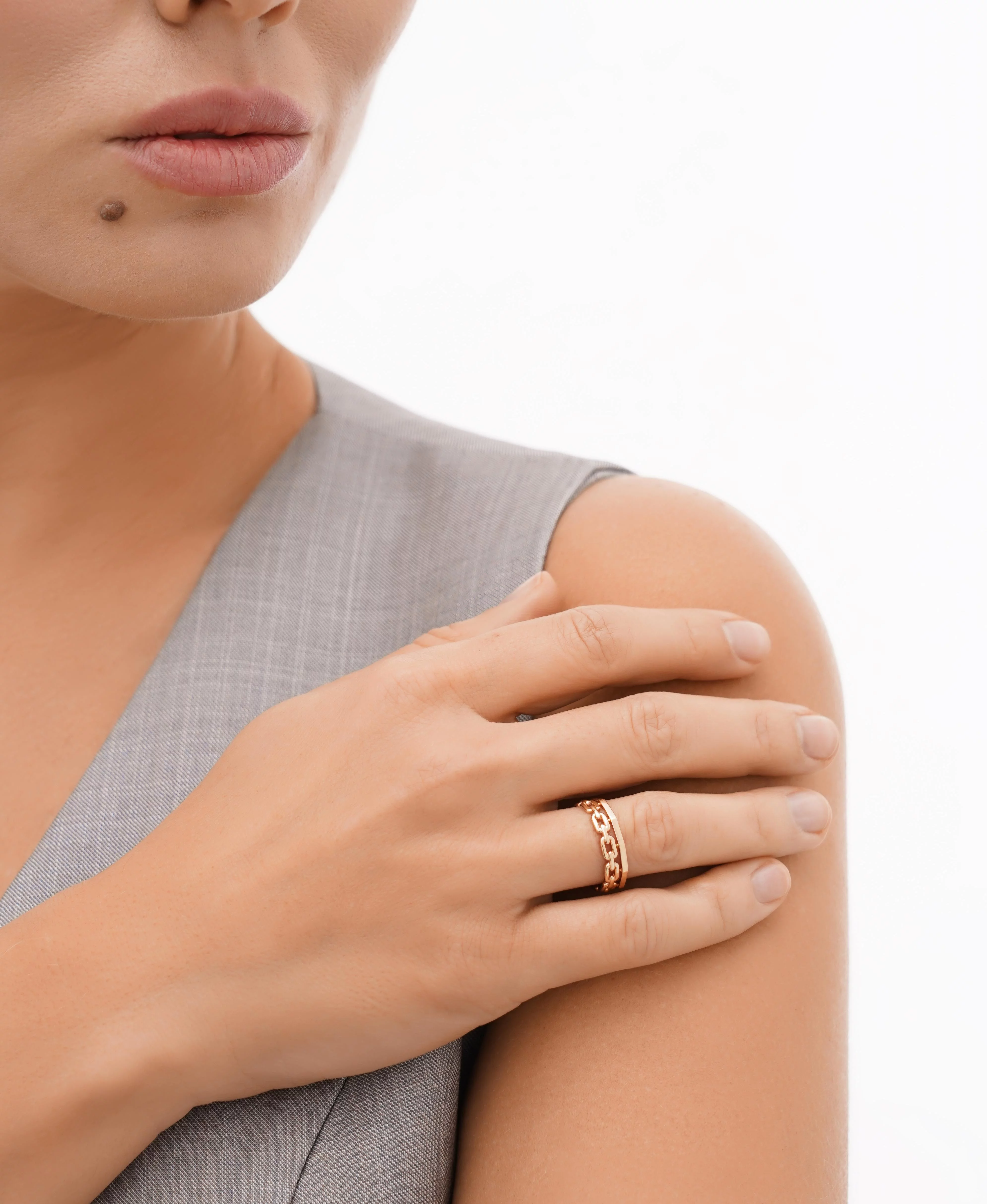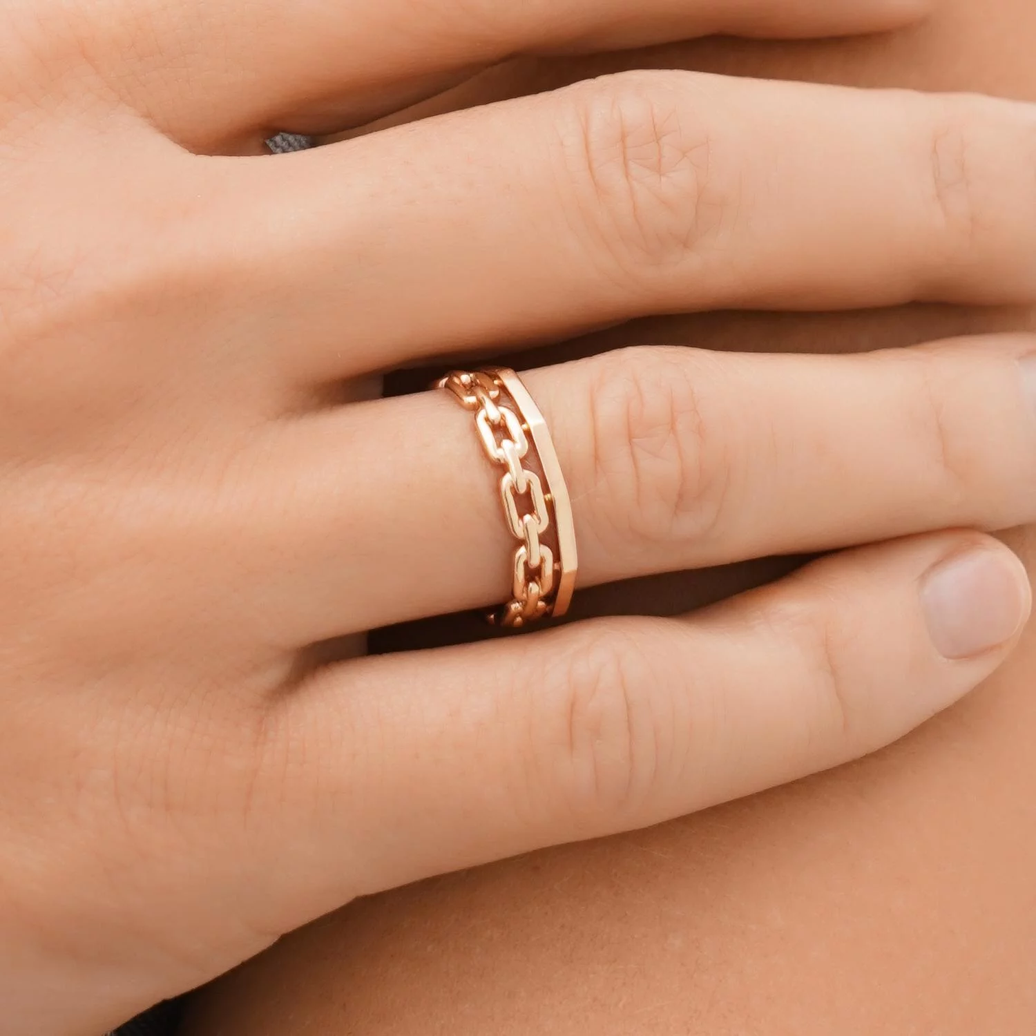 Двойное кольцо "Звенья" из красного золота - 1611775