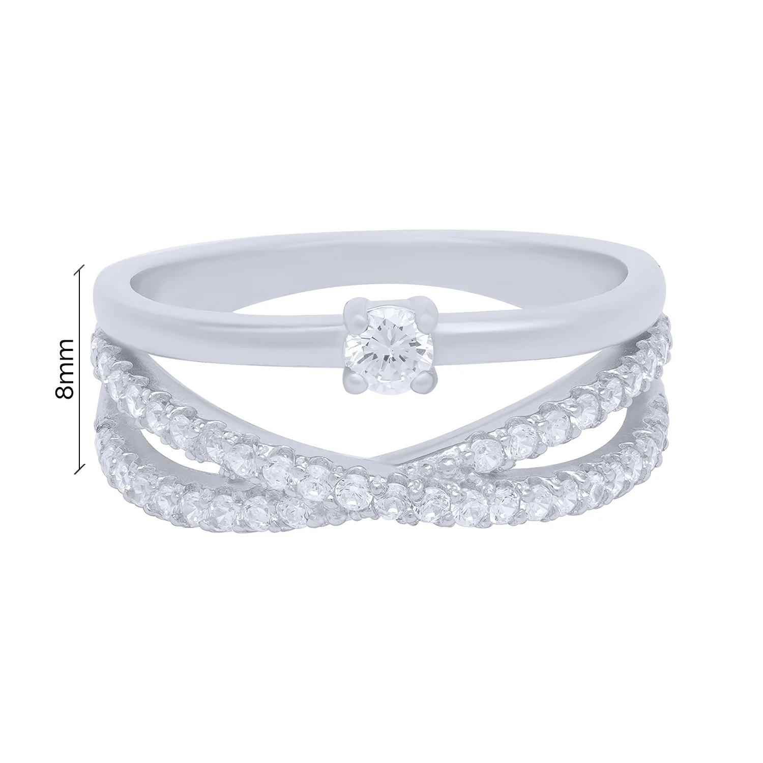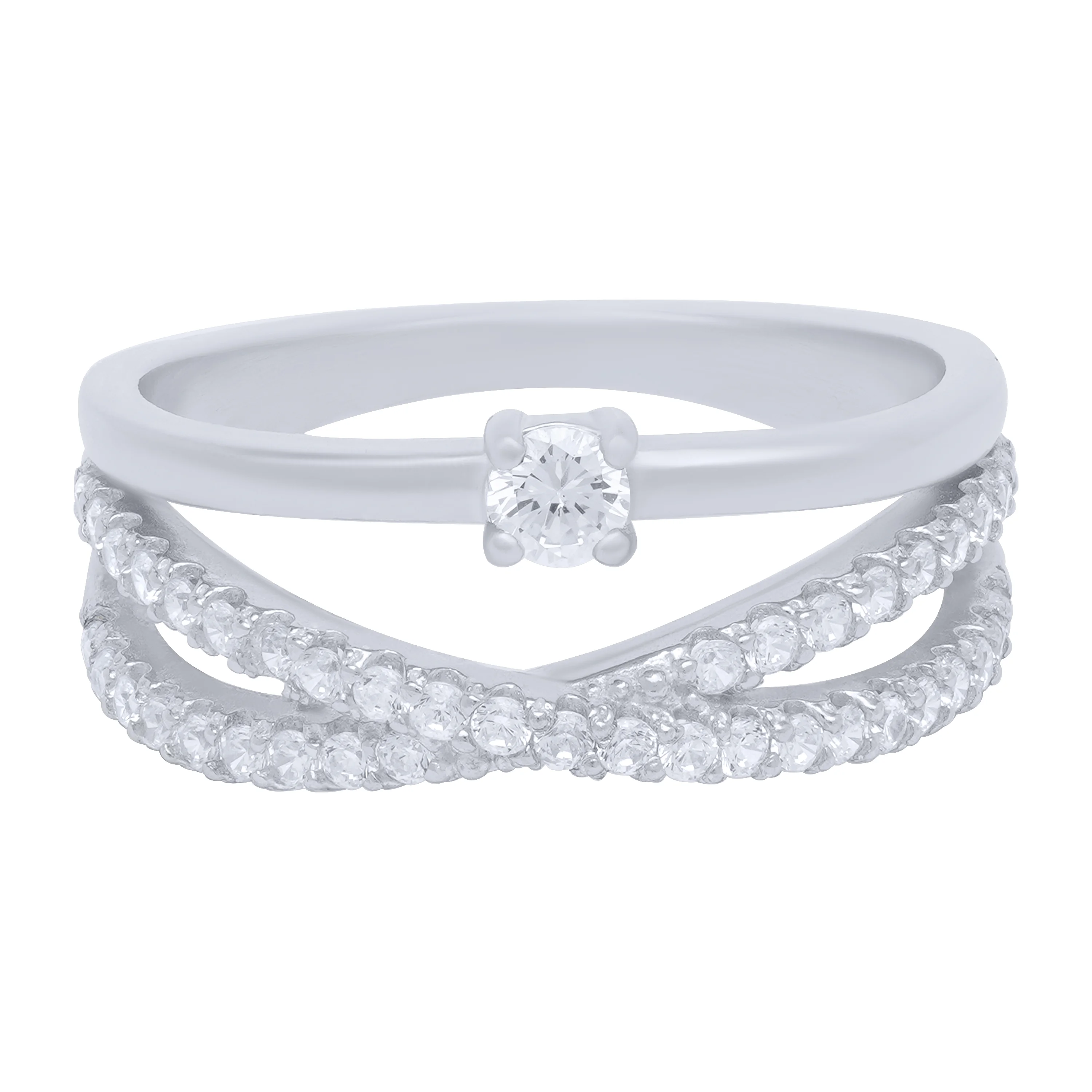 Тройное серебряное кольцо "Переплетение" с дорожкой фианитов - 1682873