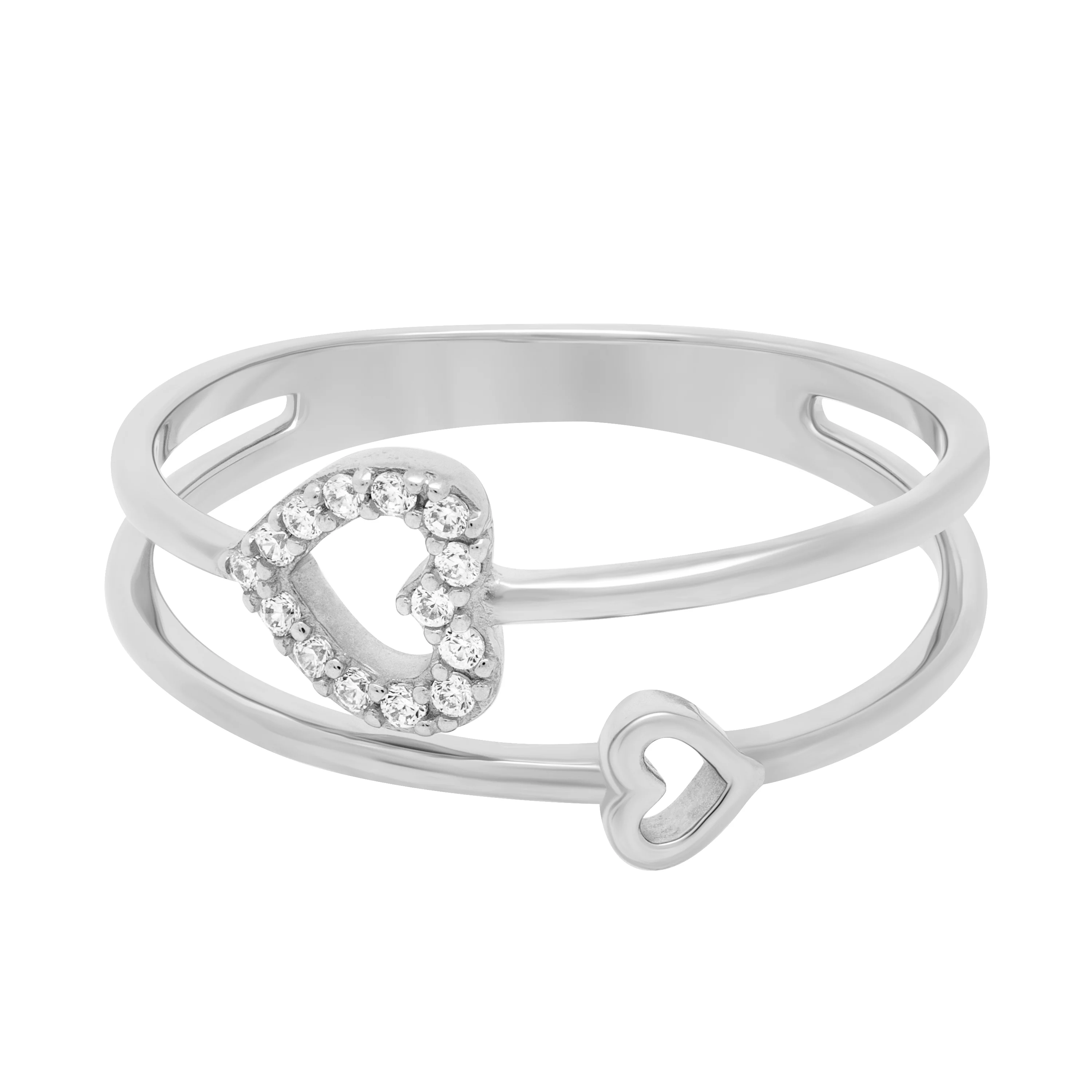 Двойное золотое кольцо с сердечками и фианитами - 1706749
